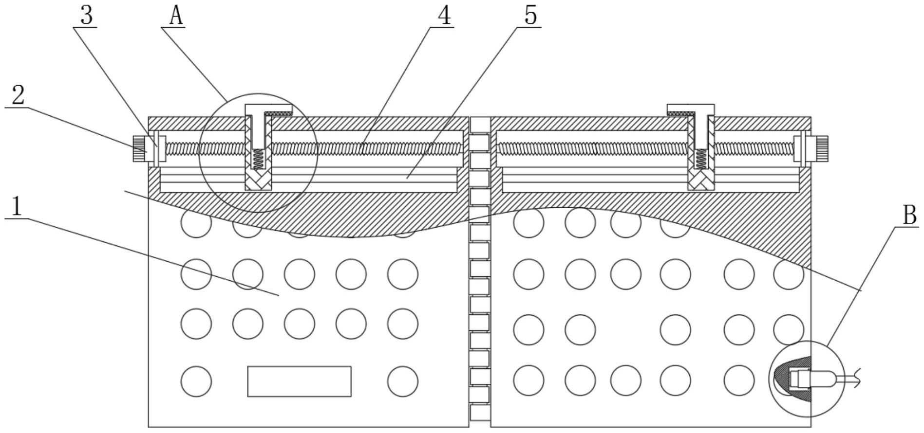 本实用新型涉及蓝牙折叠键盘技术领域,尤其为一种便于携带的蓝牙折叠键盘,包括键盘外壳、移动杆和充电插头,所述键盘外壳内侧固定连接有导向杆,所述导向杆外侧滑动连接有移动块,所述移动块内侧固定连接有伸缩弹簧,所述伸缩弹簧上端固定连接有移动杆,所述移动杆内侧固定连接有阻尼垫,所述移动块中间内侧螺旋连接有螺纹杆,所述螺纹杆远离键盘外壳中心点的一端固定连接有调节钮帽,所述调节钮帽外侧转动连接有定位块,本实用新型中,通过设置的调节钮帽、螺纹杆、移动杆和移动块,便于对不同尺寸的平板和手机进行夹持,同时通过设置的阻尼垫可以有效的提高对平板和手机夹持的稳定性,具有良好的实用价值,值得进行广泛的推广使用。