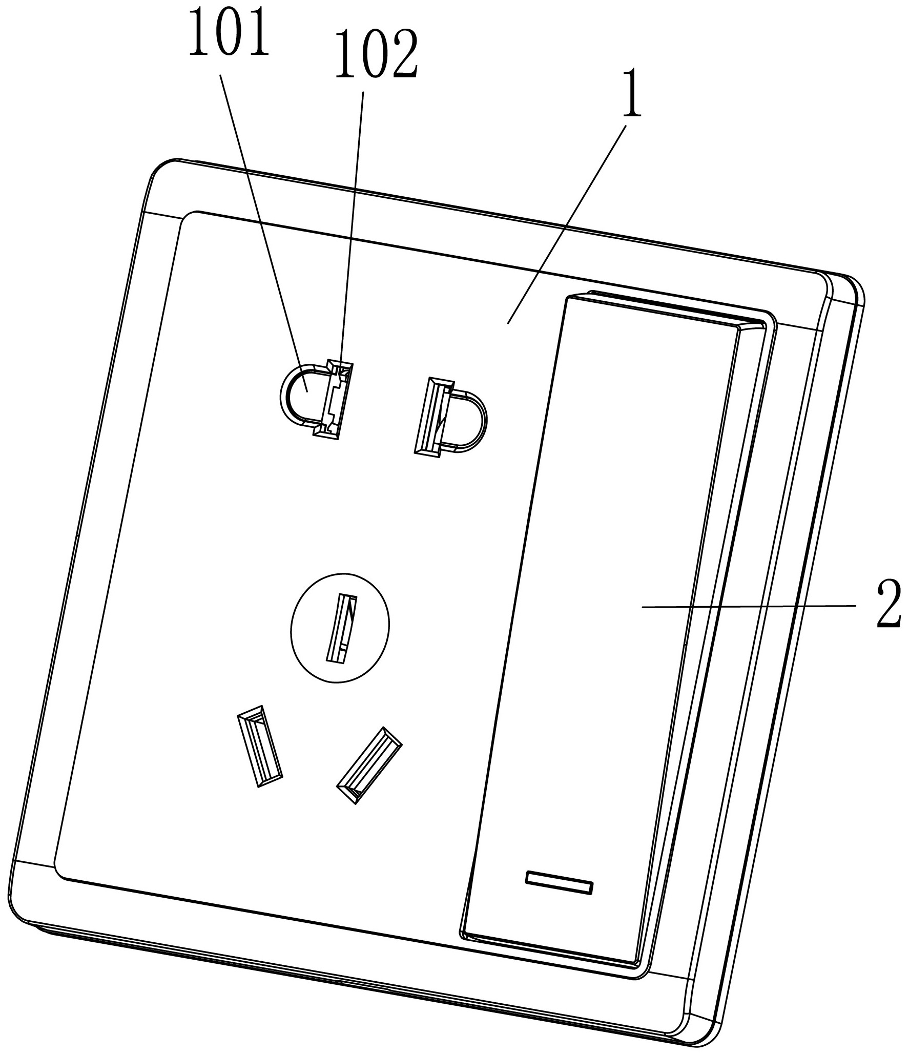 本实用新型具体涉及一种可适应圆插的扁插插座,包括面板和底板,面板安装于底板的前表面,面板的前表面设有第一圆插口和第一扁插口,第一圆插口和第一扁插口相连通,底板的前表面设有第二扁插口和第二圆插口,第二扁插口和第二圆插口相连通,第一圆插口和第一扁插口分别与第二扁插口和第二圆插口相对应,第一圆插口或第二圆插口内设有用于遮挡第一圆插口或第二圆插口的遮挡凸部。本实用新型的有益效果通过第一圆插口或第二圆插口内设有用于遮挡第一圆插口或第二圆插口的遮挡凸部,起到符合新国标规定,也可以根据实际需求,拆卸遮挡凸部而适配圆柱插头,起到使用方便优点。