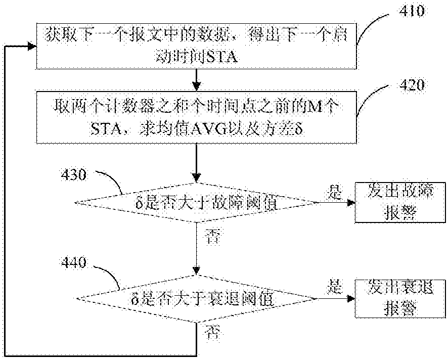 本发明涉及一种辅助动力单元APU燃油组件的性能检测方法,包括:获取一时间段内多个时间点上的APU报文;根据所述APU报文获取所述APU燃油组件的运行参数,所述运行参数至少包括启动时间STA;计算所述时间段内所述启动时间STA的平均值AVG以及偏差指数δ;根据所述偏差指数δ确定所述APU燃油组件的性能处于稳定期,衰退期,或故障期。