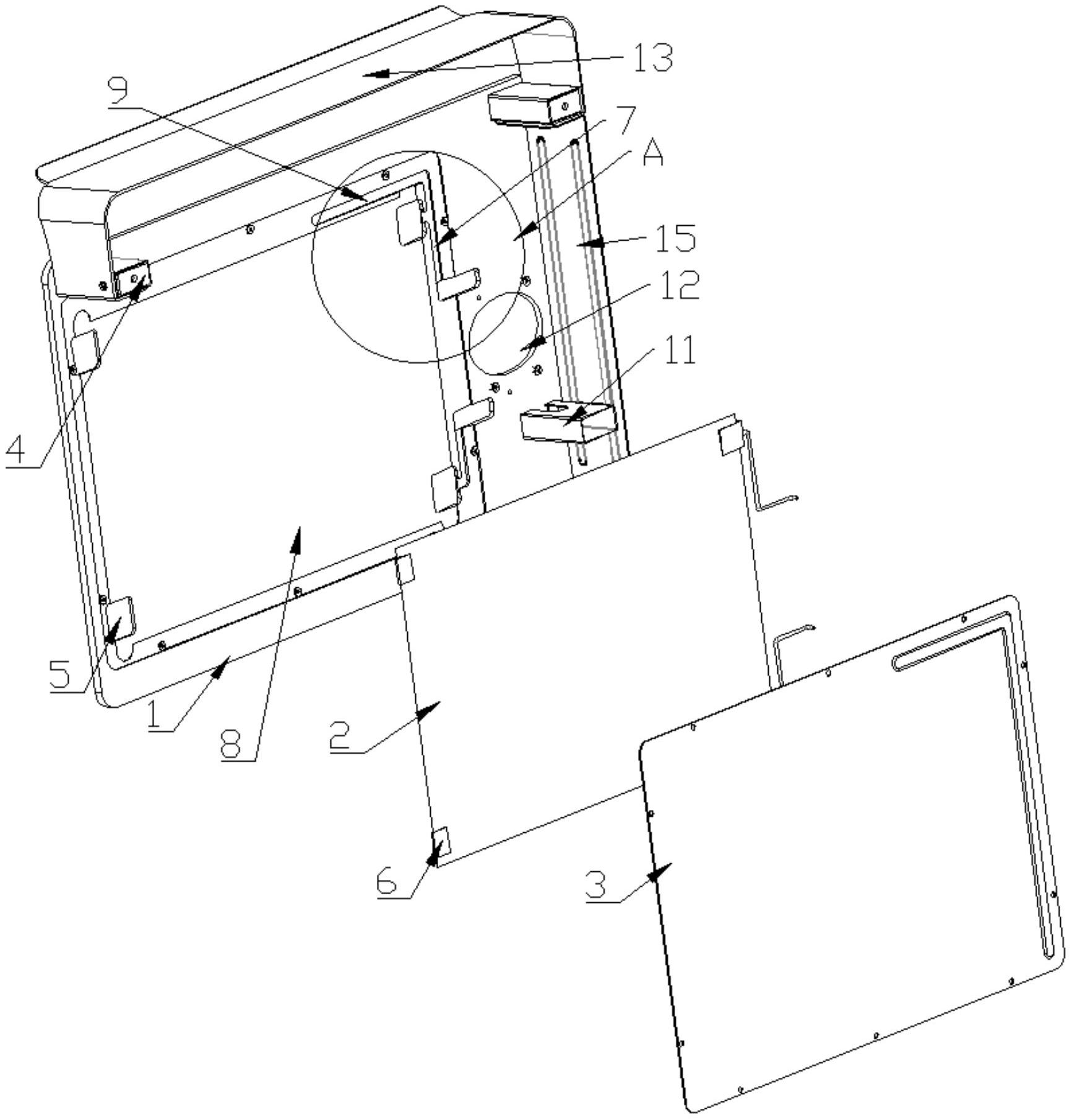 本实用新型公开一种面板式电热毛巾架,包括面板主体,所述面板主体包括前板、发热膜和背板,所述前板或背板上设有支撑件,以使面板主体与其固定面之间具有间隙,前板和/或背板上开设有用于放置发热膜的放置槽,以使前板和背板之间形成用于发热膜放置的腔体。放置槽包括胶泥槽,所述胶泥槽位于放置槽四角位置,用于放置发热膜的绝缘胶泥。放置槽包括走线槽,所述走线槽与胶泥槽连通。放置槽包括温控探头槽。本实用新型结构简单,前板和/或背板上设有放置槽,能够为发热膜的走线提供一定空间,并且走线槽延伸至控制器处,防止潮湿的浴室环境影响线路正常工作。