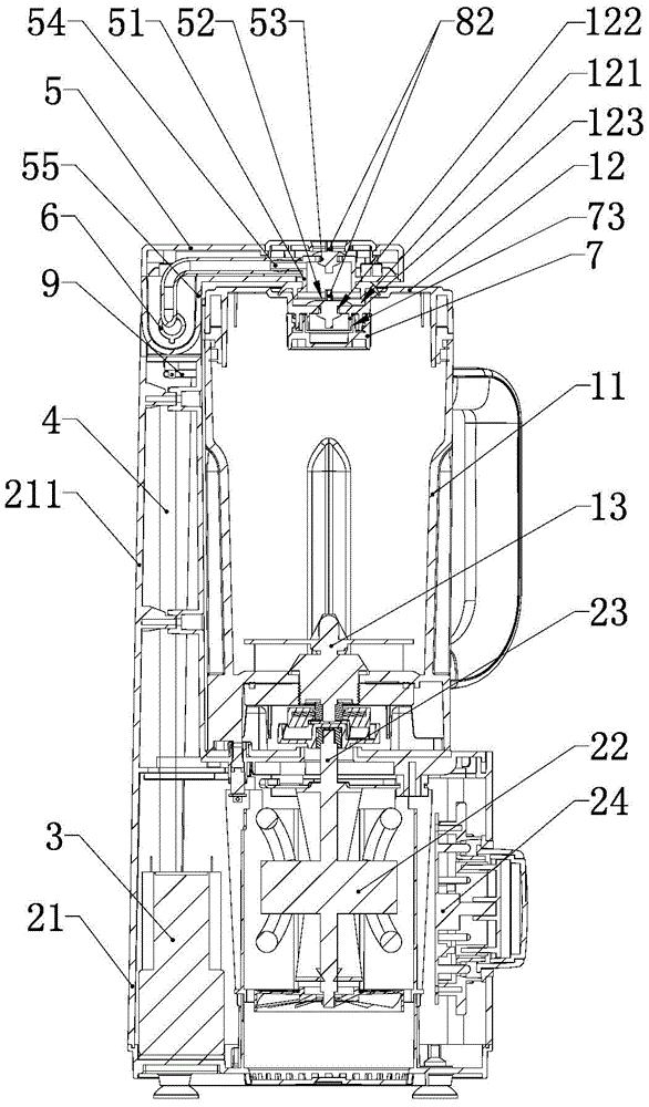 本实用新型公开了一种真空搅拌机。其主要由搅拌杯、机座、抽真空组件、顶盖和防逆流盖等部件组成。本实用新型除具有有效抑制果汁和蔬菜汁等食材酶促褐变的发生、提升食材的保鲜时间和口感、让食材的营养保留更完整的优点外,还能有效避免食材汁液进入抽真空组件及防止食材汁液回流,使用起来方便,安全。
