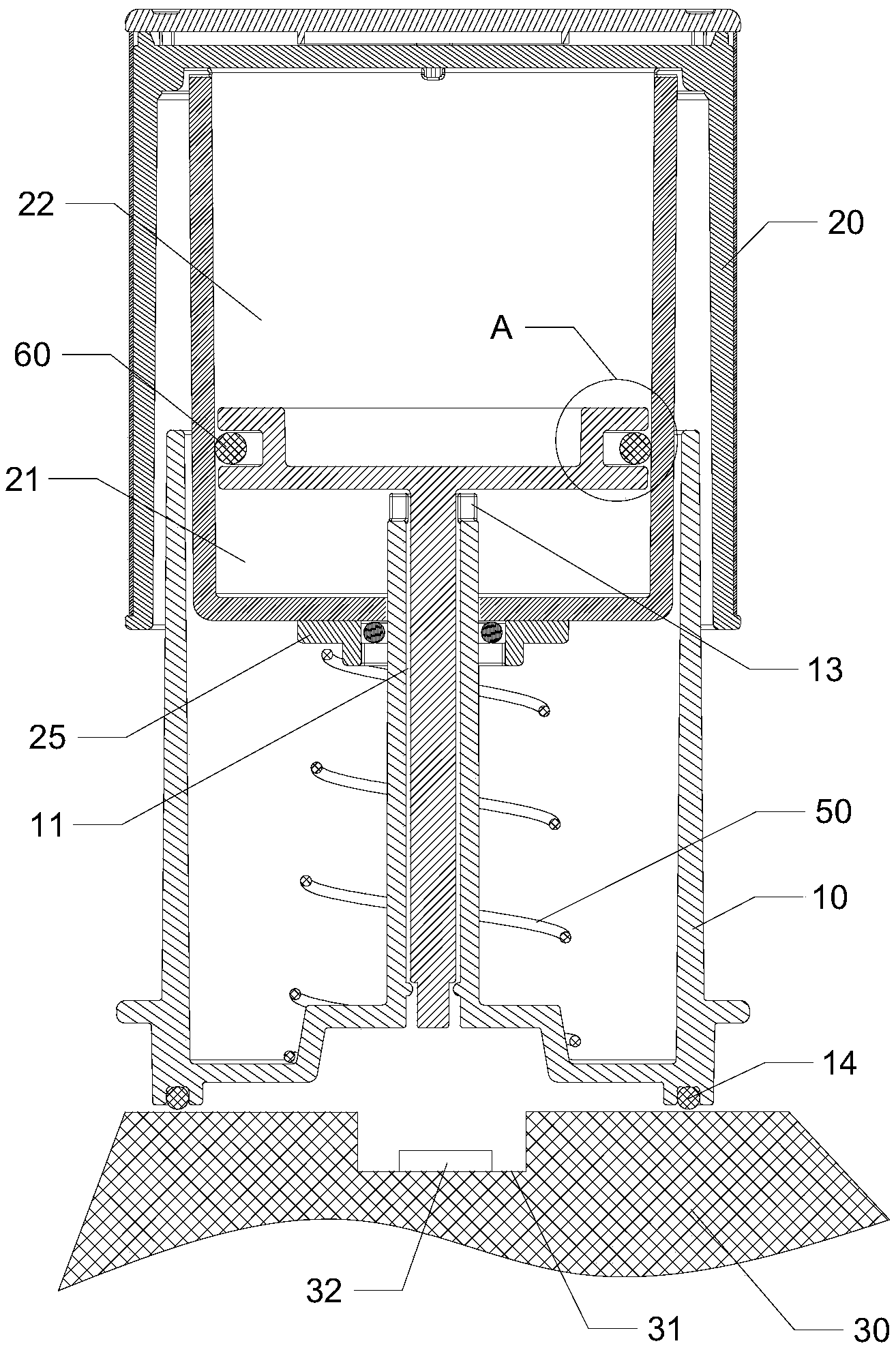 本实用新型公开了一种榨汁机及其抽真空装置;该抽真空装置包括:与待抽真空的容器密封连接的第一壳体,其内设有抽气通道,所述抽气通道与所述容器上的开口连通;与所述第一壳体伸缩连接的第二壳体,其内设有气腔,所述气腔与所述抽气通道连通;活塞,其固定在所述抽气通道的一端,且所述活塞将所述气腔内密封分隔成第一气腔和第二气腔;该榨汁机的容器开口处设有单向阀。本实用新型的榨汁机及其抽真空装置能够快速地将其容器内的空气抽走,使容器内逐渐形成真空状态,使容器内的果汁能够保存更长时间。
