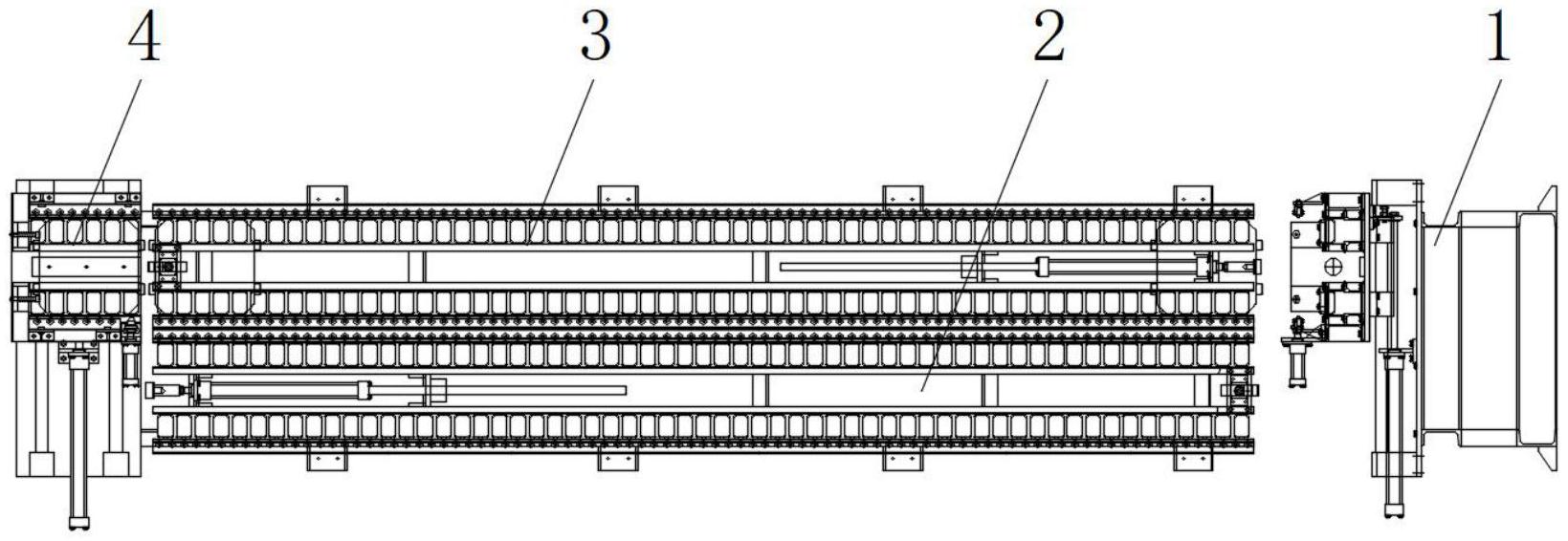 本实用新型公开了一种加工中心用PPL流水线,属于机加工技术领域。流水线包括共线设置的工位调节台、搬入线、搬出线和循环台,搬入线和搬出线结构相同,搬入线和搬出线的输出方向相反,搬入线和搬出线上均连续设置有流水治具,搬入线的输出端与工位调节台的推入工位配合,工位调节台的揽出工位与搬出线的输入端配合,循环台的承接工位与搬出线的输出端配合,循环台的循环工位与搬入线的输入端配合。本实用新型通过工位调节台、搬入线、搬出线和循环台组成循环流水线,将循环流水线引入加工中心改变了单个逐次装夹拆卸工件的工序,全新的加工中心供料方式使装夹和拆卸工件的工序弊端得到解决,加工同一批次工件的效率得到提高。