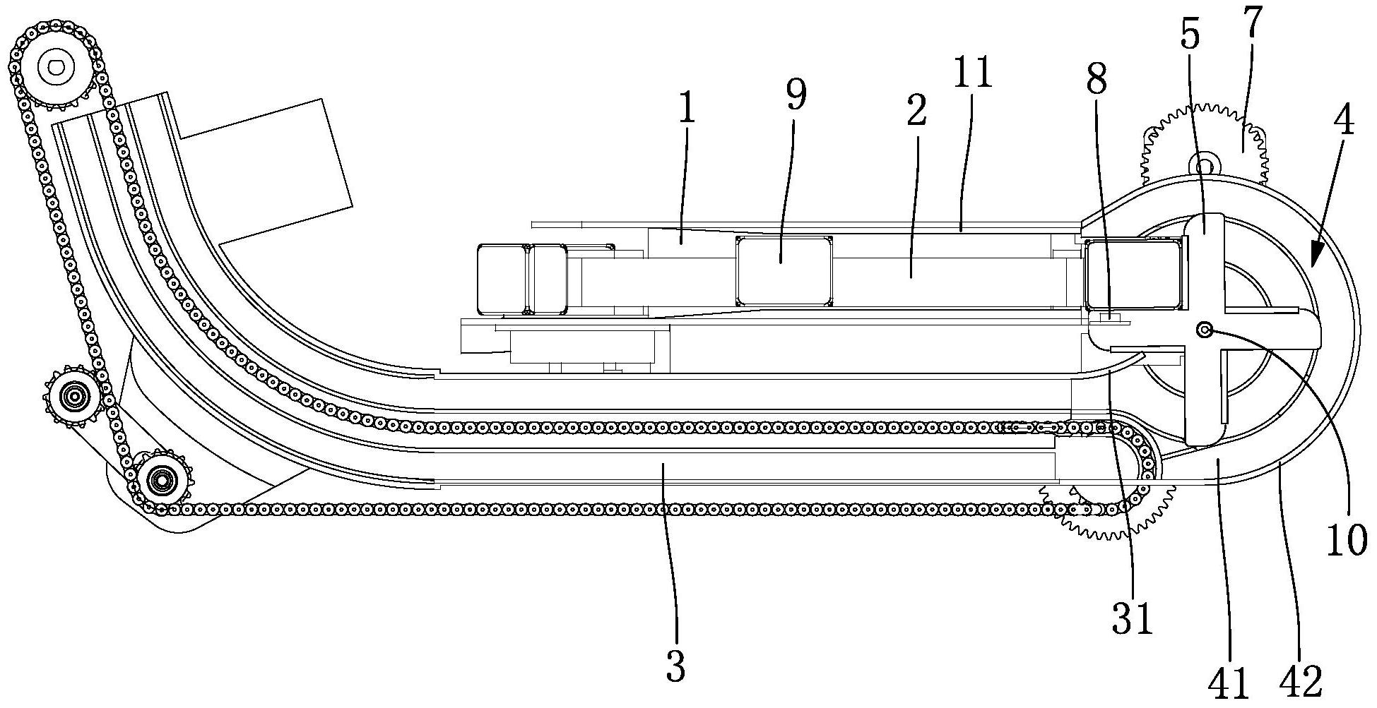 本发明涉及一种全自动麻将机,解决了现有送牌槽与储牌槽需垂直设置的问题。全自动麻将机,包括送牌槽、储牌槽和连接所述送牌槽出牌口的叠牌机构,所述全自动麻将机还包括旋转推牌机构,所述旋转推牌机构包括转牌轨道、设于所述转牌轨道内的推牌件和驱动所述推牌件旋转的驱动件,所述转牌轨道位于所述叠牌机构与所述储牌槽的入牌口之间,所述推牌件旋转以将所述叠牌机构上的麻将牌沿所述转牌轨道推送至所述储牌槽。