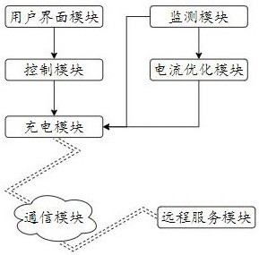 本发明公开了一种可远程监控装置及其控制系统,涉及充电监控技术领域,监测模块在电池处于恒流充电的过程中,实时监测充电设备数据、充电环境数据以及电池数据,综合分析充电设备数据、充电环境数据以及电池数据后,判断是否需要停止充电或调节恒流充电电流,当判断需要停止充电时,充电模块停止输出电流,当判断需要调节恒流充电电流时,电流优化模块计算生成修正电流值,修正电流值发送至充电模块,充电模块以修正电流值对电动车电池恒流充电,该控制系统不仅能够对充电异常进行警示,而且还能依据当前充电状态对恒流充电过程中的电流进行实时调节,保障电动车电池的安全充电。