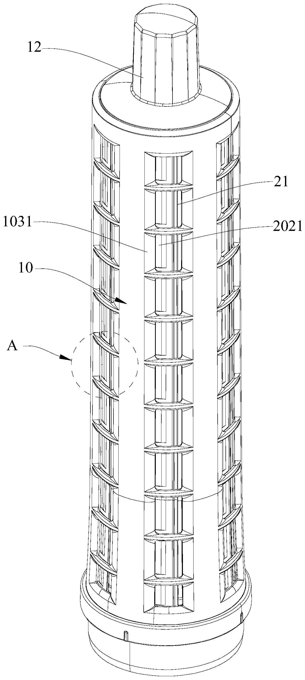 本发明公开了一种电吹风用风嘴,包括有风嘴本体以及阻风件;风嘴本体具有安装腔室以及第一出风口,安装腔的壁面设置有能够降低风流出风角度的第一导风凹位,风流能够流经第一导风凹位并从第一出风口流出;阻风件可转动安装于安装腔内,阻风件能够遮挡第一出风口的左侧或者右侧,以使风流自第一出风口的右侧或者左侧流出。与现有技术相比,通过在安装腔的壁面上设置第一导风凹位,让风流从第一出风口流出前,风流能够通过该第一导风凹位进行导流之后再从第一出风口流出,从而能够降低风流流出时的角度,让风流从第一出风口流出的角度变低,进而能够保证流出的风流能够贴着风嘴本体的侧面进行流动,从而提高风嘴卷发效果。