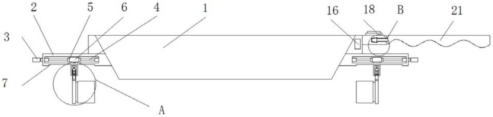 本实用新型公开了一种商用电磁炉炒锅,属于炒锅领域,包括锅体,所述锅体左右两侧下端皆固定安装有柱体A,所述柱体A外侧壁固定安装有电机A,所述电机A内侧贯穿柱体A转动连接有螺杆A,所述螺杆A外壁转动套接有丝杆套A,所述丝杆套A外壁固定套接有轴承套A,所述柱体A下端侧壁固定安装有滑动槽,所述轴承套A贯穿滑动槽固定安装有柱体B,所述柱体B上端内壁固定安装有电机B,所述电机B下端转动连接有螺杆B。通过设置转动结构嵌入式固定结构,便于根据电磁炉的大小和厚度调节固定装置的位置,更好的将炒锅固定在电磁炉上,便于根据需要更换握把的种类,提高了炒锅的实用性。