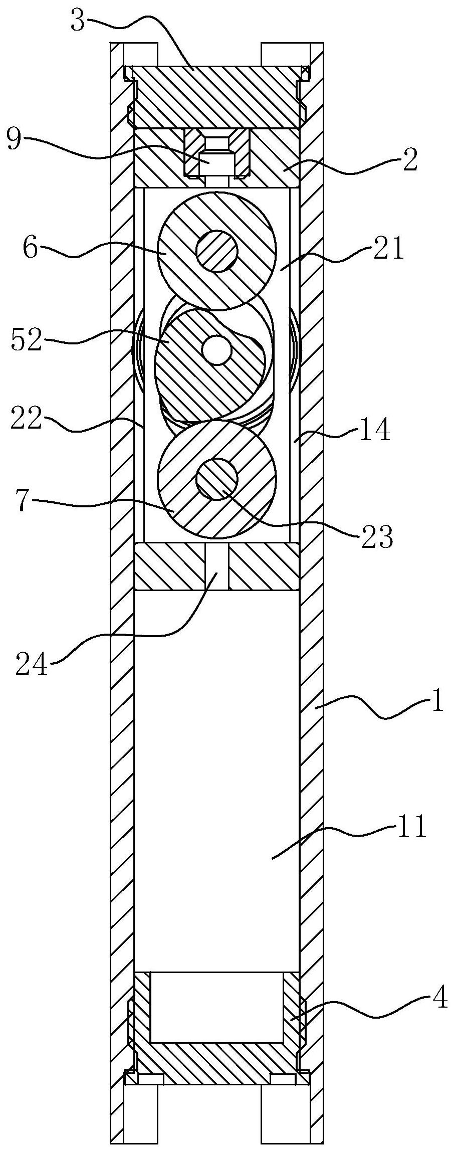 本发明公开了一种液压闭门器,涉及闭门器技术领域,包括壳体、活塞、前端盖、后端盖、凸轮、第一单向阀、第二单向阀、第一转动轮和第二转动轮,壳体内设置有储满液压油的空腔,活塞设置于空腔内且与壳体内壁滑动密封连接,活塞与前端盖之间形成有第一空腔,活塞与后端盖之间形成有第二空腔,凸轮布置于第一转动轮和第二转动轮之间、且分别与第一转动轮和第二转动轮的圆周面相抵触,在凸轮上开设有弧形缼槽,当门闭合时,第一转动轮置于弧形缼槽内,第二转动轮与凸轮的凸起部抵触,在门开启至最大转角时,第一转动轮抵触于凸轮凸起部的侧边,第二转动轮抵触于弧形缼槽的一侧边;具有开关门声音轻,提高其使用操作性的作用。