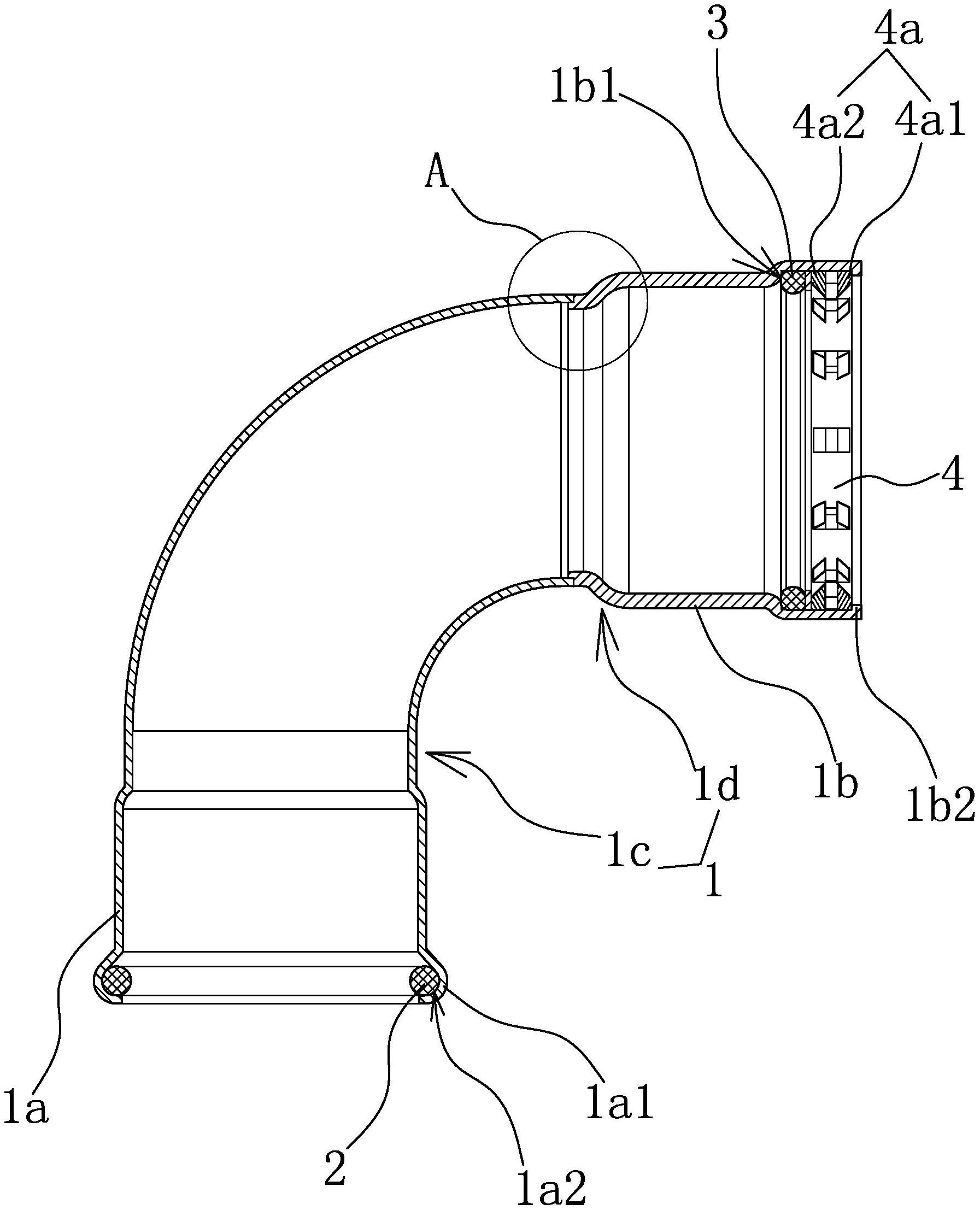 本实用新型提供了卡压连接头,属于管道连接技术领域。它解决了布置方向相垂直的两不同厚度管件转换连接后使用寿命短且安全性较低的问题。它包括弯曲呈90°的本体,本体两端分别为第一卡压端和第二卡压端,第一卡压端的端部设有凸环且第一卡压端内侧与凸环位置对应处设有凹槽,凹槽内设有密封圈,第二卡压端的壁厚大于第一卡压端,第二卡压端内侧具有定位座,定位座内设有密封垫圈与卡圈,卡圈内侧沿周向分布有若干咬合齿,密封垫圈抵靠在定位座上且卡圈抵靠在密封垫圈上,第二卡压端的端口内具有抵靠在卡圈背向密封垫圈一侧的挡肩。它具有安全性高、使用寿命长等优点。