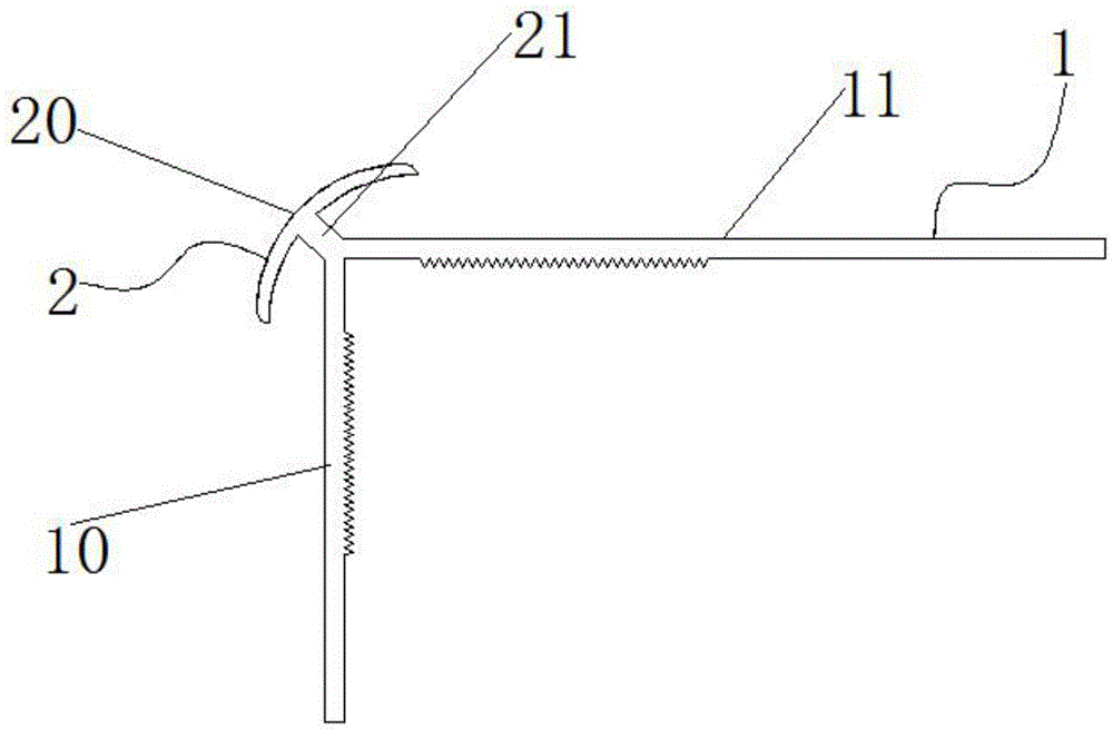 本实用新型提供了一种新型铝质阳角条,包括底板和角板,所述的底板包括相互垂直设置的第一支撑板和第二支撑板,所述角板包括一个弧形面,所述弧形面的凹面中心位置设有连接柱,所述连接柱与第一支撑板和第二支撑板相交处连接。所述底板和角板和连接柱为铝材一体式结构;所述第一支撑板和第二支撑板装配于墙壁的一面设有锯齿线。本产品操作方便,安装牢固;墙板的左右两端方便地嵌入铝质阳角条中,减少了脱胶、开裂积垢等问题;同时,简化了墙板的安装,保护了墙角并美化了外观,且本实用新型结构简单,成本低廉,非常的实用。