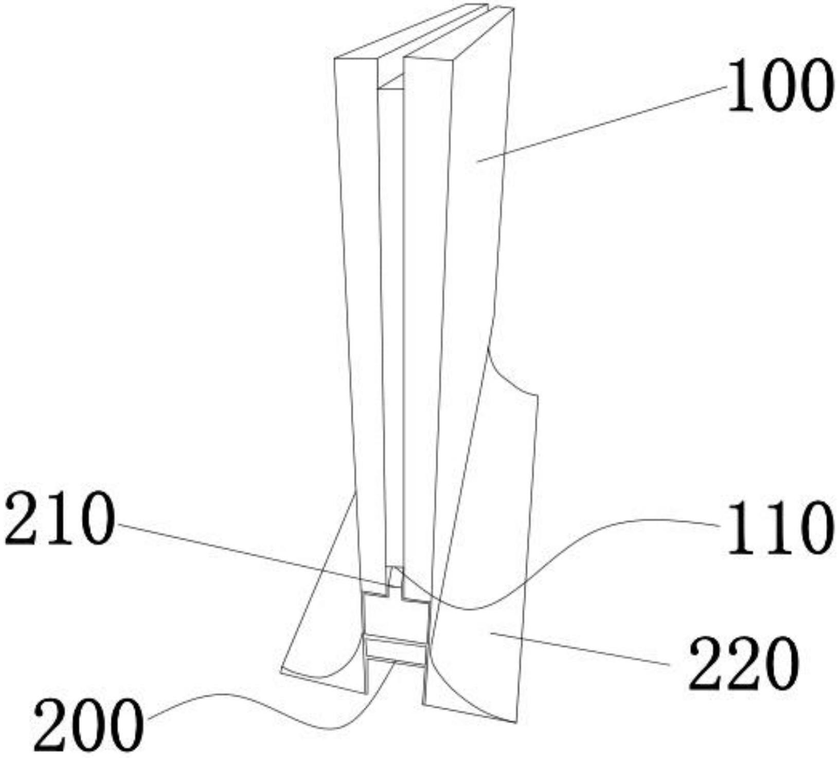 本实用新型提供一种新型带高强树脂板的洁净室墙体,包括墙体和底座,所述墙体和底座卡接装配,所述墙体与底座装配一面设有第一凹槽,对应地,所述底座上设有与第一凹槽配合的第一凸条,所述两墙体相邻一侧皆设有第二凹槽,还包括连接件,所述连接件两端设有与第二凹槽配合的第二凸条。本墙体通过合金框、填充棉层、石膏板层和高强树脂板层制成,在保证墙体强度的同时,质量轻,并且本产品墙体下端还装配有底座,可以随意移动墙体,如果用于需要用到墙体分隔空间的功能的话,可以通过本墙体对空间进行的隔断,并且用户也可以根据需要调整墙体大小,非常的实用方便。