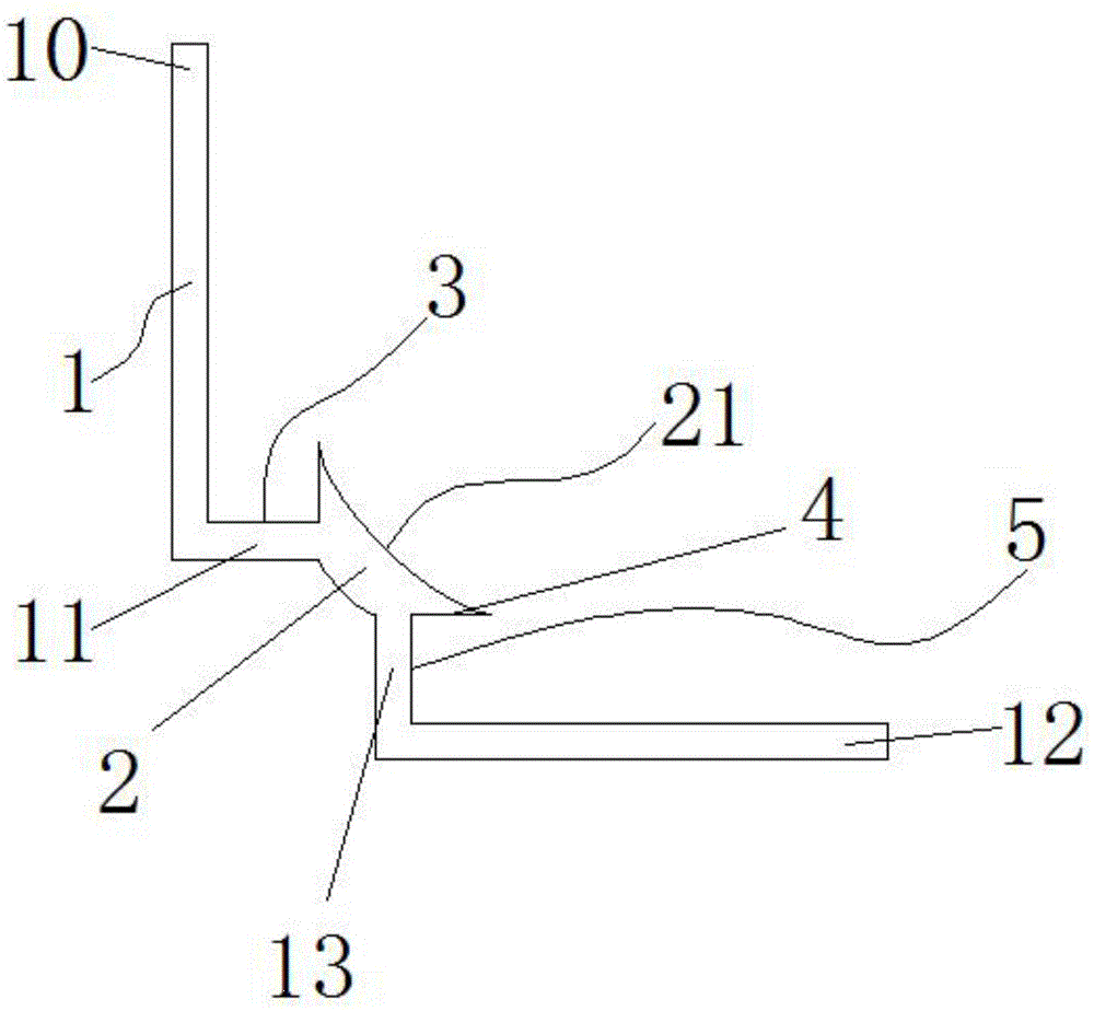 本实用新型提供一种新型合金阴角条,包括阴角条主体,所述阴角条主体包括第一长板、第二长板、第一短板和第二短板,所述第一长板和第一短板垂直固定装配,所述第二长板和第二短板垂直固定装配,还包括连接块,所述连接块一端与第一短板连接装配,另一端与第二短板连接装配,所述连接块和第一短板与第二短板装配之后配合第一长板和第二长板形成两个供墙板插入的第一槽口和第二槽口,连接块与第一短板与第二短板装配之后还形成一个凹陷。本产品不同于使用传统的阴角条和采用密封胶进行安装的方式,本产品具有便于安装的特点,本产品连接块设有弧形面,更加圆润美观,且减少缝隙积灰,方便清洁清理,本产品还有多种颜色可供选择,非常的实用,美观大方。