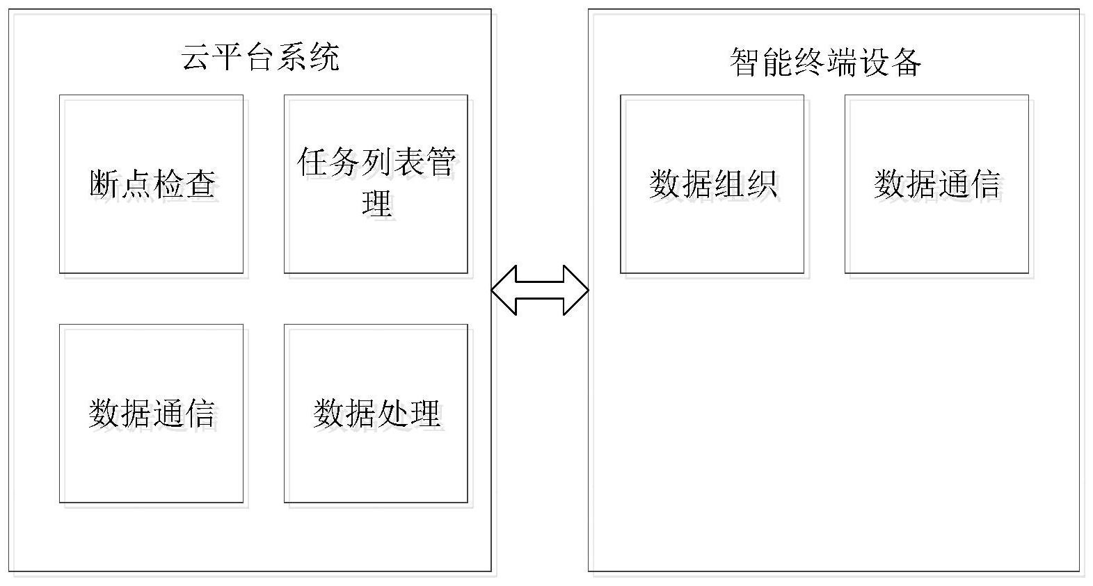 本发明公开了分布式光伏技术领域的一种分布式光伏数据回填系统及方法,包括:云平台系统、智能终端设备和供云平台系统与智能终端设备数据交互的通信模块,其中:所述云平台系统包括断点检查模块、任务列表管理模块和数据处理模块,所述断点检查模块接收监控数据包,判断监控数据包是否有断点;响应于监控数据包有断点时,更新包含数据回填任务项的任务列表;所述任务列表管理模块基于任务列表中任务项初始状态,向智能终端发送数据回填选择数据包;接收智能终端设备反馈的数据回填返校数据包,更新任务项。本发明有效提高了不稳定通信通道下的通信灵活性,既可文件准备完毕即时上送,也可在通信通道频繁通断时安排后续批量上送。