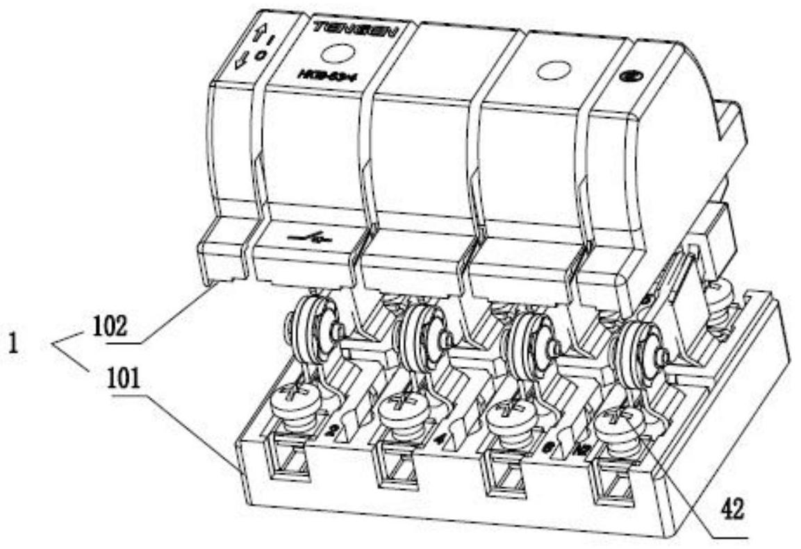 一种隔离开关。主要解决目前隔离开关通过接线鼻接线,安装不便的问题。其特征在于:所述静触头或所述刀座包括由铝制成的第一连接部和由铜制成的第二连接部,所述第一连接部用于与导线连接,所述第二连接部用于与所述闸刀接触。本实用新型提供一种隔离开关,通过具有铝制第一连接部和铜制的第二连接部的刀座来实现接线,不需要常规的接线鼻的结构,便于安装。