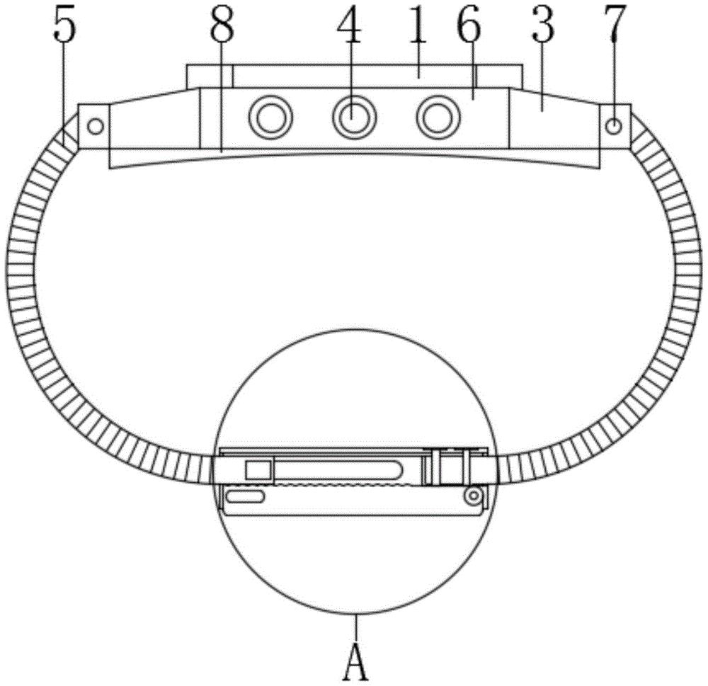 本实用新型涉及智能设备技术领域,具体为一种人工智能穿戴设备,包括固定盒、智能设备、束带和束带卡,固定盒内部开设有凹槽,在凹槽的开口处盖设有封盖,智能设备固定连接在固定盒内,并通过封盖封闭,在固定盒的外侧一体成形的设有固定架,固定架活动连接控制按钮,在固定架左右两侧一体成形的设有连接座,连接座端部开设有固定槽,在固定槽内通过固定销钉固定连接束带,有益效果为:具有保护结构,可以将智能手表保护起来防止手表受摩擦产生划痕,而且根据使用者调节束带长度,是手表可以固定在手臂上的同时不会产生紧缚感,可以使束带保持贴合在手臂上,不会产生空隙影响佩戴舒适度。