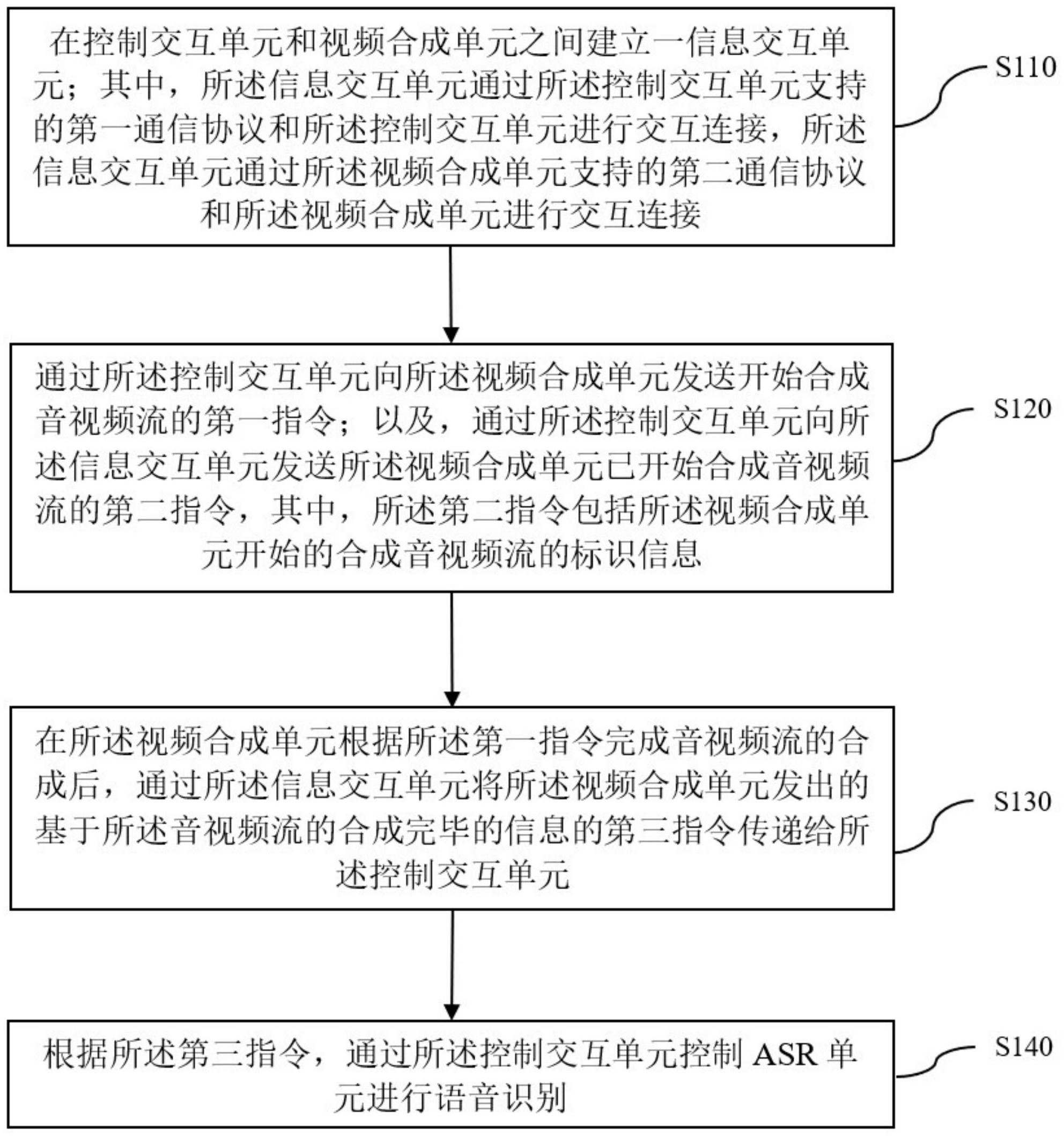 本发明提出一种收音控制方法、装置及存储介质,在传统的人机对话系统中引入信息交互单元,该信息交互单元既支持与其它单元建立基于MRCP协议的连接,又支持与其它单元建立基于HTTP协议的连接,通过该信息交互单元与控制交互单元和视频合成单元间建立交互连接,在得知视频合成单元完成音视频流合成工作后,及时将该消息发送至控制交互单元,控制交互单元继而通知ASR单元开启语音识别,从而能够准确完整地对用户的回答进行语音识别,解决了传统人机对话系统中的ASR单元对合成的音视频流中的语音进行识别和遗漏用户回答声音的问题。