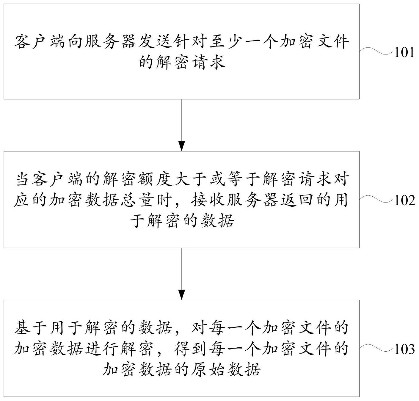 本申请实施例提供了数据获取和数据传送方法、终端、服务器及存储介质,数据获取方法包括:向服务器发送针对至少一个加密文件的解密请求,解密请求包括:每一个所述加密文件的加密数据的大小、用于确定用于解密的数据的信息;当客户端的解密额度大于或等于解密请求对应的加密数据总量时,接收所述服务器返回的用于解密的数据,其中,该客户端的解密额度指示客户端当前最多可以解密多少加密数据,解密请求对应的加密数据总量为每一个该加密文件的加密数据的大小之和;基于用于解密的数据,对每一个该加密文件的加密数据进行解密,得到每一个该加密文件的加密数据的原始数据。