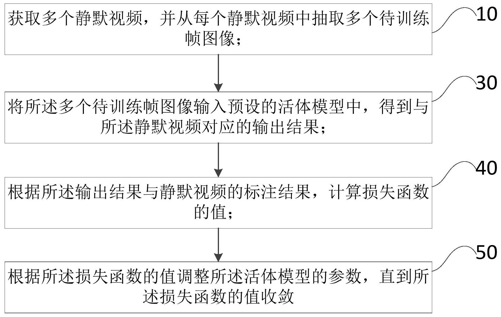 本发明提供了一种活体模型训练和人脸活体检测方法、装置和电子设备,所述活体模型训练方法包括:获取多个静默视频,并抽取多个待训练帧图像;输入预设的活体模型中,得到与所述静默视频对应的输出结果;根据所述输出结果与静默视频的标注结果,计算损失函数的值;根据所述损失函数的值调整所述活体模型的参数,直到所述损失函数的值收敛。这样,可以由静默视频中抽取多个单帧图像,进行训练和结果输出,这种多帧图像判断的方式及模型,避免了单帧图像造成的安全等级低的情况,且获取静默视频,无需设置特定动作,因此避免了动态图像中动作难度过于复杂的问题;不仅安全等级高,且动作简单,便于实现,提高了使用者的体验度。