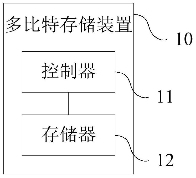 本申请公开了一种多比特存储装置以及电子设备,其中,该多比特存储装置包括控制器和存储器;控制器用于对存储器的存储模式进行切换;其中,存储模式至少包括多比特存储装置固有的第一存储模式和不同于第一存储模式的第二存储模式;控制器还用于在第一存储模式下将写入数据以第一存储模式存储于存储器中,或在第二存储模式下将写入数据以第二存储模式存储于存储器中。通过上述方式,可以使一个存储器具有多种不同的存储模式,可以满足更多的存储场景,使存储器更加多功能化。