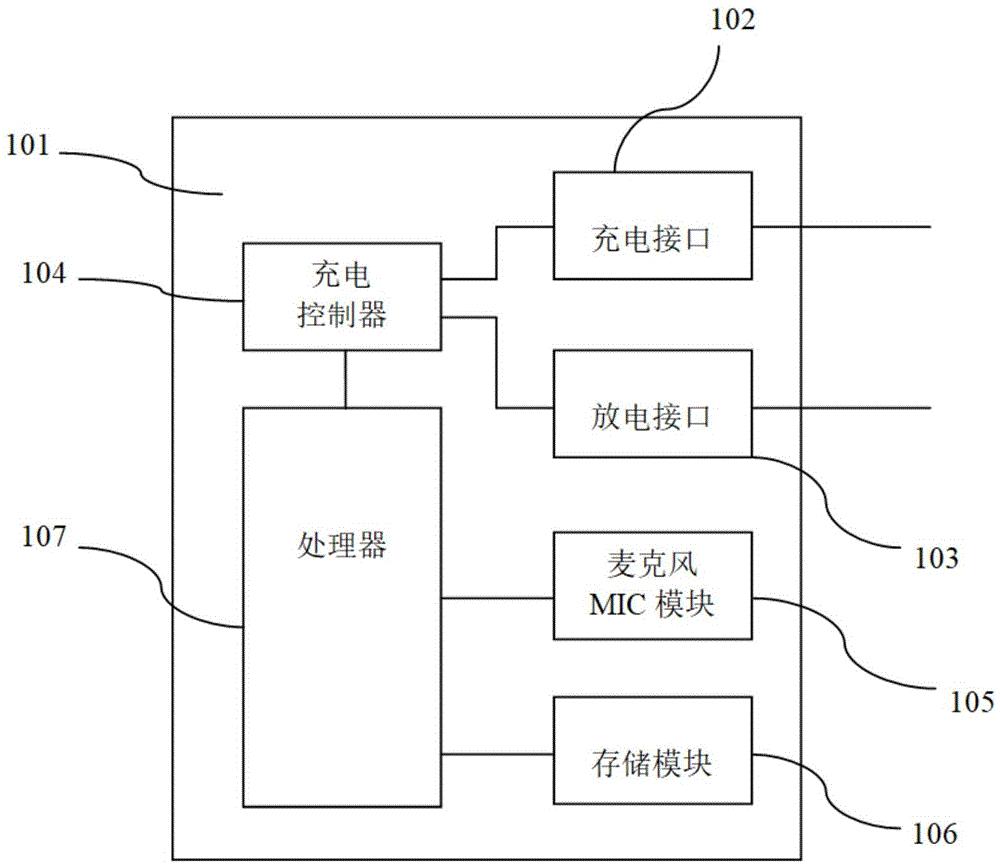 本实用新型提供一种移动电源装置,在实现充放电功能时,在充电控制器的控制下,利用充电接口外接电源为移动电源自身充电,利用放电接口为外部电子移动设备进行充电。在实现录音功能时,利用麦克风MIC模块采集声音信息,处理器对声音信息进行处理并存储在存储模块中。应用本实施例方案,在实现充放电的基础功能外,利用移动电源小巧,便于携带的优势,还可以实现录音功能,以满足用户需求。
