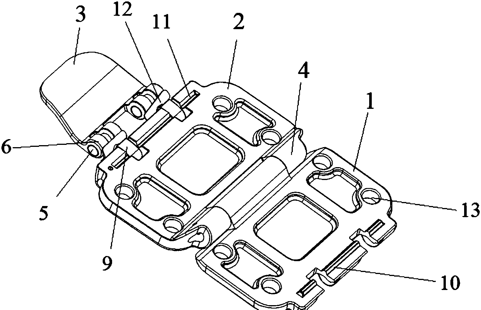 本实用新型公开了一种车架折叠器,包括折叠器前盖(1)、折叠器后盖(2)以及手柄(3),所述折叠器前盖(1)的一端与所述折叠器后盖(2)的一端通过铰链轴(4)连接,所述折叠器后盖(2)的另一端与所述手柄(3)的一端通过调节轴销(8)连接,所述手柄(3)与所述调节轴销(8)连接的一端具有偏心结构(6),所述手柄(3)绕固定销轴(5)旋转,所述偏心结构(6)设置为当手柄(3)的自由端旋转至与折叠器前盖(1)接触时所述手柄旋转达到锁紧状态,弹簧(7)设置于所述调节轴销(8)上。本实用新型通过简化折叠器加工工序从而控制成本且实现更好的折叠锁紧效果。
