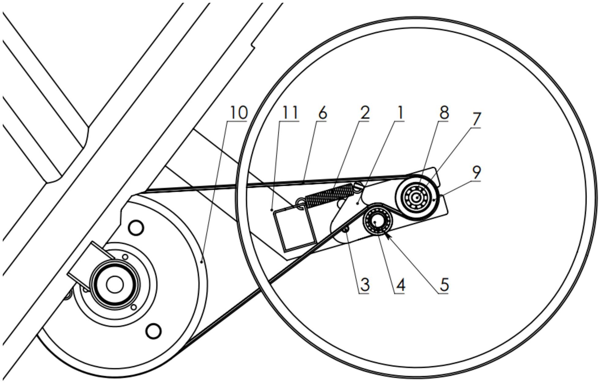 一种通过弹簧带动压力轮调节健身器材传送带松紧的结构