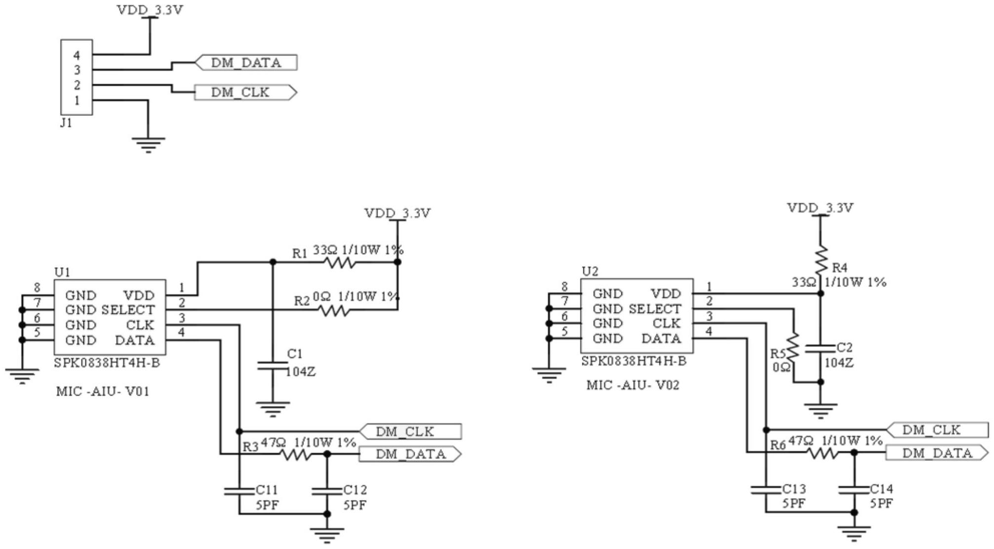 本实用新型涉及运动器材技术领域,具体地说是一种双数字麦克风定向接收控制电路。包括电路板,其特征在于:所述的电路板上端分别设有芯片一、芯片二,芯片一的1号引脚分别连接电阻一的一端、电容一的一端,电容一的另一端接地,芯片一的2号引脚连接电阻二的一端,电阻二的另一端与电阻一的另一端合并后共同连接接线端子一的4号端口,芯片一的3号引脚分别连接电容十一的一端、芯片二的3号端口、电容十三的一端、接线端子的2号端口,芯片一的4号引脚连接电阻三的一端。同现有技术相比,电路设计简单,性能可靠、稳定增加定向MIC接收功能,提升语音控制健身器材系统的安全性能,保证运动健身器材的正常使用。