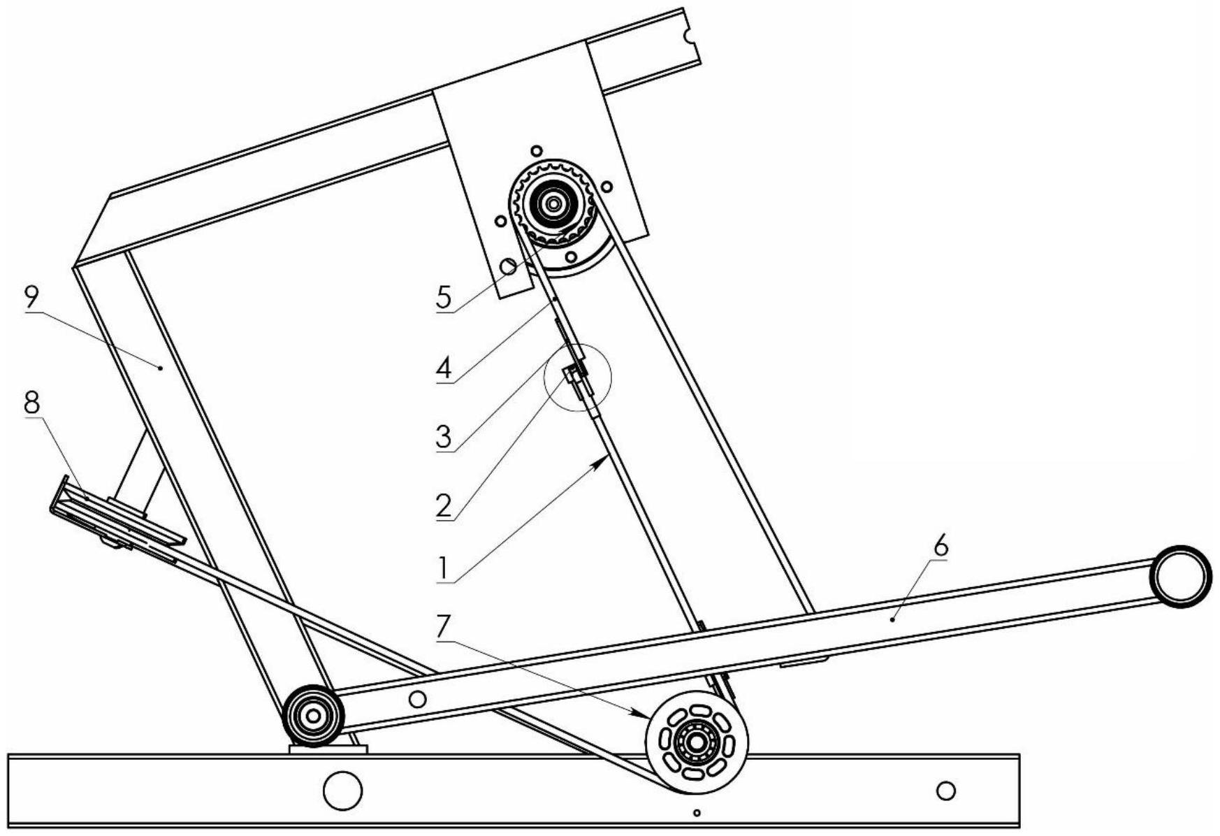 本实用新型涉及运动器材技术领域,具体地说是一种踏步机钢丝绳调节结构,包括主架,其特征在于:所述主架两侧设有结构相同的左踏步结构和右踏步结构,左踏步结构包括脚踏杆,脚踏杆一端与主架连接,脚踏杆上设有同步带,同步带经过固设于主架上方的同步带轮后与连接片的一端连接,连接片的另一端与钢丝绳扣头连接,钢丝绳扣头与钢丝绳的端头连接,钢丝绳经过固设在主架下方的滑轮组和主架前侧的转向轮连接右踏步结构的钢丝绳扣头同现有技术相比,提高了同步带的使用寿命,增加了器材的安全性,有效调节同步带使用效率。