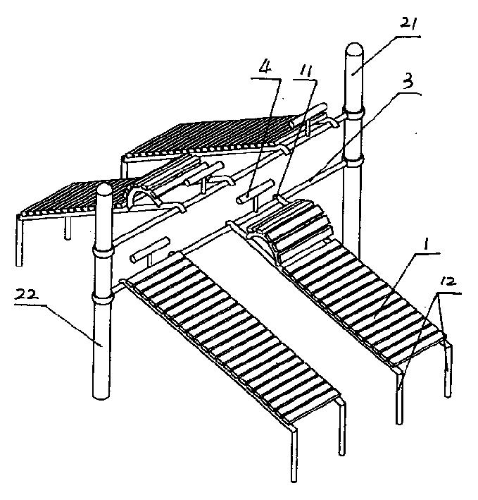 本实用新型涉及健身训练器材,尤其涉及腹肌训练器。它通过改变原有腹肌训练器水平的特点而使腹肌训练板主板有一定的倾斜度,使用它进行锻炼时可使头部得到供血,而且能充分利用人体自身的重量进行平衡,从而解决了现有技术中的腹肌训练器使用时会导致锻炼效果不好的技术问题。