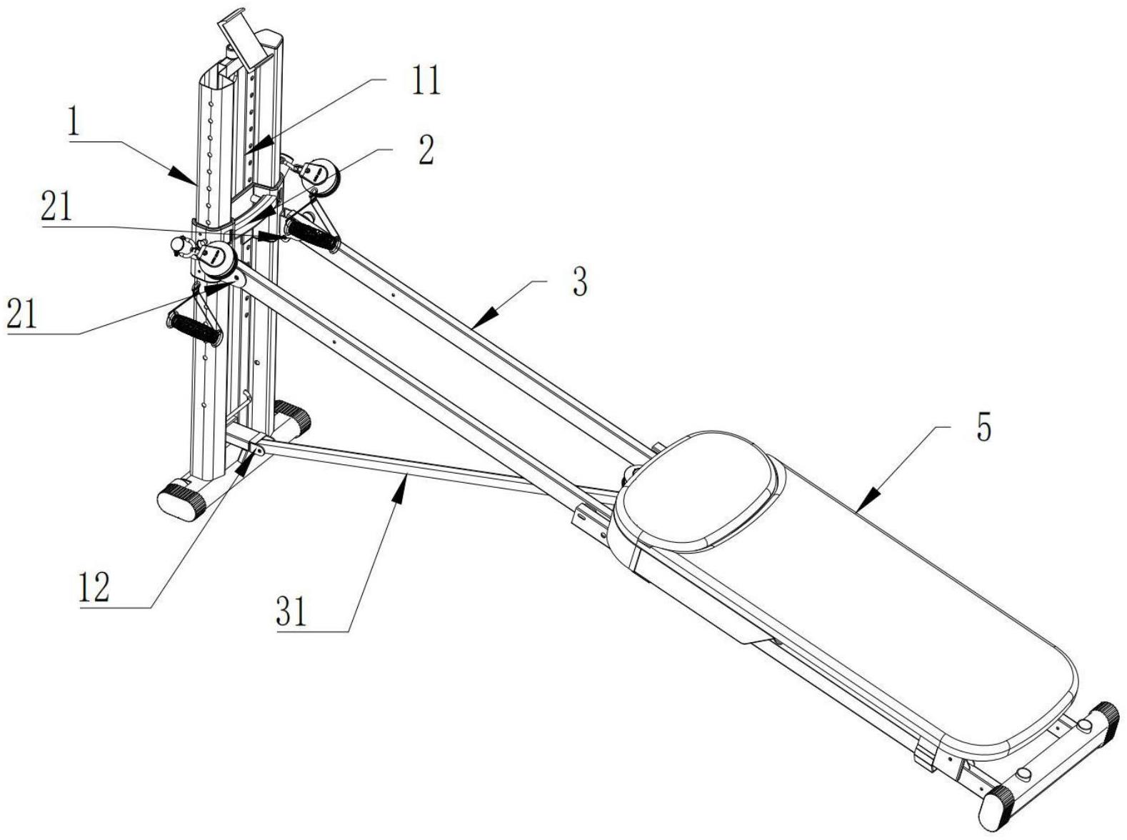 本实用新型公开了一种坐垫角度可调节的力量训练器,其包括主架体、滑动架、滑轨架、坐垫架和坐垫,坐垫架包括底架、坐垫支撑架和调节架,底架安装在滑轨架上并设有一坐垫转动座和调节座,坐垫支撑架设置在坐垫底部用于支撑坐垫,其一端转动安装在坐垫转动座,另一端与调节架转动安装,调节架底部设有一卡杆并通过卡杆与调节座的卡口相卡接调整固定其倾斜角度以支撑坐垫支撑架。本实用新型通过转动调节架并卡接在调节座的卡口上,调节架支撑坐垫支撑架和坐垫,避免因滑轨架的倾斜角度过大,导致使用者无法平稳地使用坐垫,减少坐垫的倾斜角度,满足了使用需求。