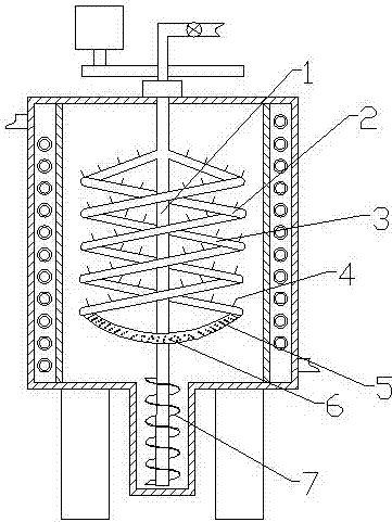 本实用新型公开了一种生产棒酸含乳饮料的高速搅拌装置,果汁通过搅拌轴进入第一搅拌构件和第二搅拌构件,并通过第一搅拌构件和第二搅拌构件上的出水管加入至棒酸含乳饮料中,第一搅拌构件的下端与第二搅拌构件的下端连接有连接管,连接管穿过搅拌轴并与搅拌轴相连通,果汁通过搅拌轴进入连接管,并通过连接管上的喷水孔加入至棒酸含乳饮料中,搅拌轴高速旋转带动第一搅拌构件、第二搅拌构件、螺旋搅拌器、连接管高速旋转,使果汁与棒酸含乳饮料充分混合,该高速搅拌装置结构简单、使用方便、果汁与棒酸含乳饮料的混合均匀度高,大大提高了棒酸含乳饮料的口感。
