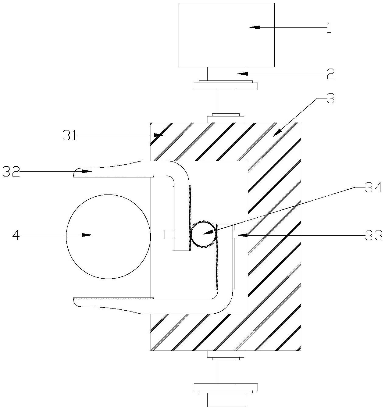 本实用新型公开了一种翻转式理瓶机,包括第一电机、支撑架、转筒和控制器,所述转筒包括筒体、夹爪和第二电机,所述夹爪和爪体驱动器分别安装在筒体之内,所述夹爪的一端从筒体的弧面筒壁处伸出并由爪体驱动器驱动而张开或者夹紧,所述筒体的直面筒壁处同心设有中轴并分别通过轴承可转动连接在支撑架上,所述中轴由第一电机驱动转动,所述第一电机和爪体驱动器分别与控制器电连接。本实用新型通过第一电机驱动转筒转动,再利用爪体驱动器驱动位于筒体的弧面筒壁处的夹爪收紧或者放松,从而实现药瓶的抓放和180°翻转,结构简单,工作效率高,能够大大节约人工。