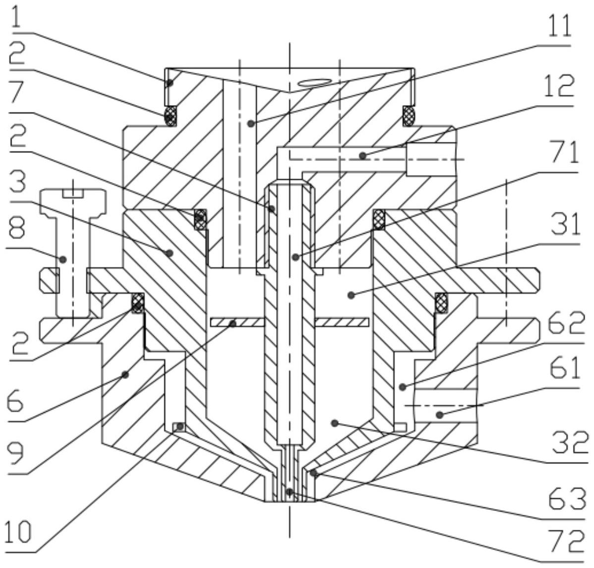一种用于多层滴丸设备中制备三层滴丸的滴制滴头