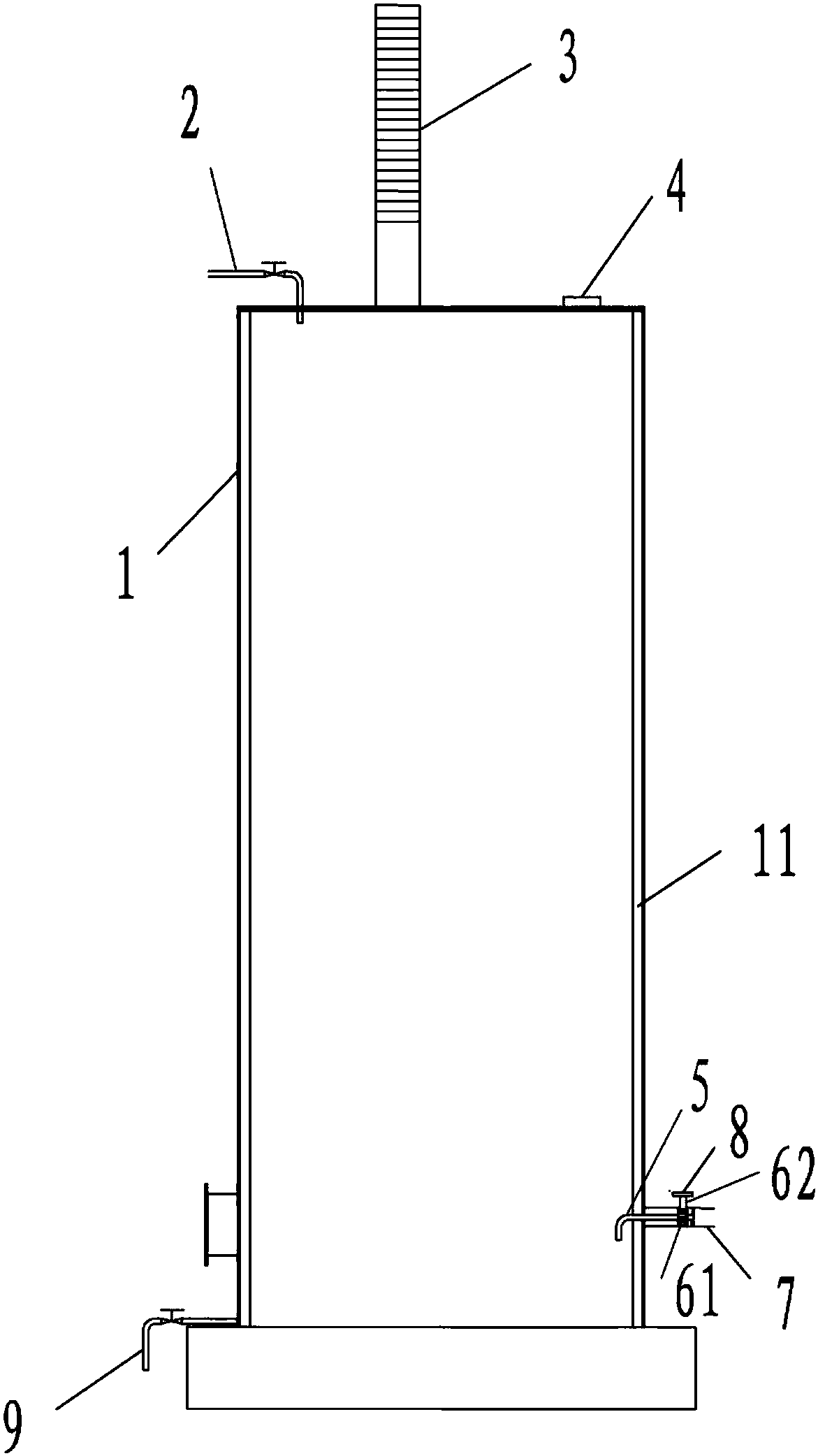本实用新型涉及废液回收设备领域,具体涉及一种提高粘多糖收率的设备,包括沉降罐,所述沉降罐顶部装有进料管和液位计,并设有观察孔,所述沉降罐下部侧面装有抽料管和放料管,所述抽料管位置高于所述放料管,所述抽料管和放料管在所述沉降罐左右两侧分别安装。本实用新型结构简单、设计巧妙,有效解决了在采用有机溶剂对粘多糖进行精制、分离时,粘多糖无法全部完成沉淀,废液中依然存在少量的粘多糖,该部分随着有机溶剂废液流失掉,造成收率降低的问题,本实用新型对粘多糖废液进行有效收集,将废液中的粘多糖产品进行回收,具有潜在的市场价值。