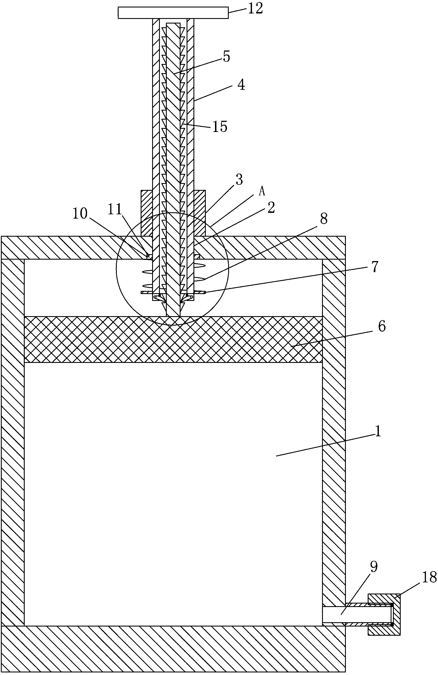 本实用新型提供一种化妆品容器,解决了现有的化妆品容器一开封就使得其中的化妆品暴露于空气中,影响化妆品的质量。包括上下封闭的密封筒体,所述密封筒体上端固定有盖在筒体上端通孔上的固定筒,固定筒内滑动穿设有一端置于密封筒体内的压力筒,压力筒内穿设有活动杆,活动杆的下端固定有与密封筒体内侧壁密封配合的橡胶活塞,压力筒下端径向向外延伸有环形支撑台,环形支撑台和密封筒体上侧壁内侧面之间设有套在压力筒上的弹簧,压力筒和活动杆之间设有上下移动压力筒可使活动杆单向向下移动的结构,密封筒体侧壁上设有连通到密封筒体底部的出液管,出液管上设有当不出液时的密封结构,橡胶活塞和密封筒体上端之间连通外界大气。