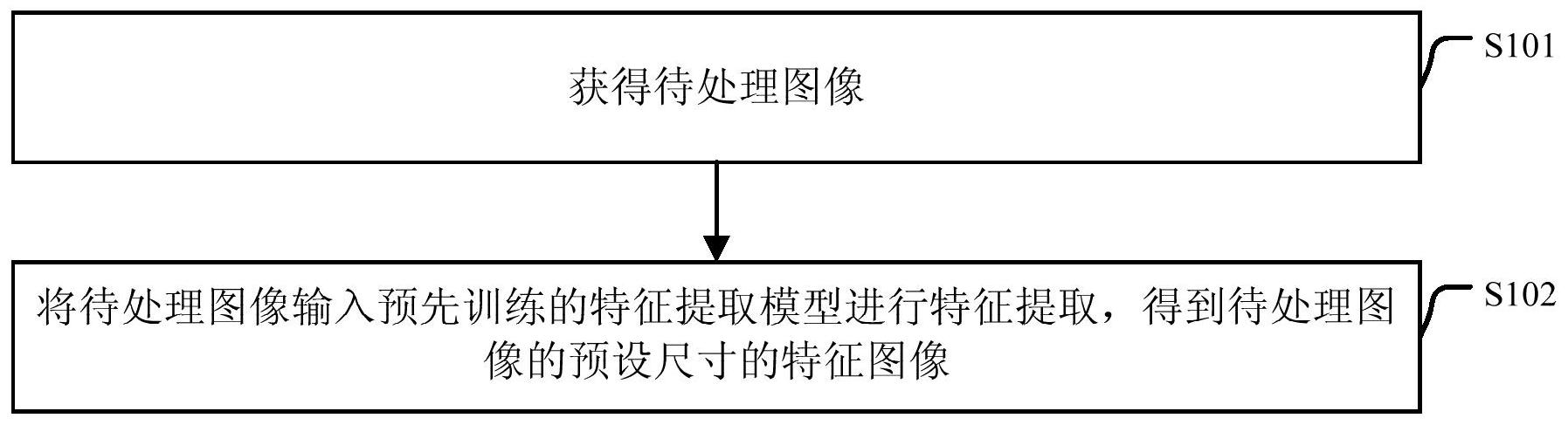本申请实施例提供了一种特征提取方法及装置,涉及图像处理技术领域,其中,上述方法包括:获得待处理图像;将待处理图像输入预先训练的特征提取模型进行特征提取,得到待处理图像的预设尺寸的特征图像,具体的,在待处理图像的尺寸与预设尺寸不一致的情况下,基于预设尺寸对待处理图像进行缩放,得到缩放图像;通过卷积操作提取缩放图像的特征,得到第一特征图像;尺寸转换层,通过卷积操作对第一特征图像进行尺寸转换,得到尺寸与预设尺寸一致的第二特征图像,作为待处理图像的特征图像。应用本申请实施例提供的方案进行特征提取,能够减少所提取特征的损失。