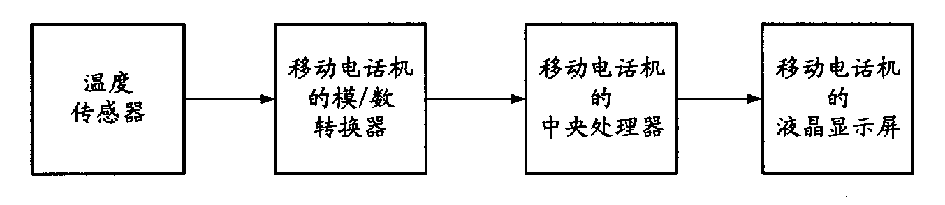 一种具有测量温度功能的移动电话机,包括有:天线、机壳、键盘、液晶显示屏、受、送话器、电池和位于机壳内的控制电路;其特点是:该移动电话机设置有由温度传感器、移动电话机内主芯片中的模/数转换器、中央处理器和液晶显示屏组成的数字显示的温度测量装置,该温度测量装置能够测量室内外环境温度和人体的温度。本发明的移动电话机不仅具有普通手机的语音和数据通信的功能,还可作为一个数字显示的温度计量测室内外环境温度和人体体温,甚至可以用作工农业生产场合中使用的温度测量装置。该装置为人们随时随地测量人体体温和其周围的室内外环境气温提供了极大方便,而且,该装置采用数字显示温度测量值,方便、直观、精确,有很好的推广应用前景。