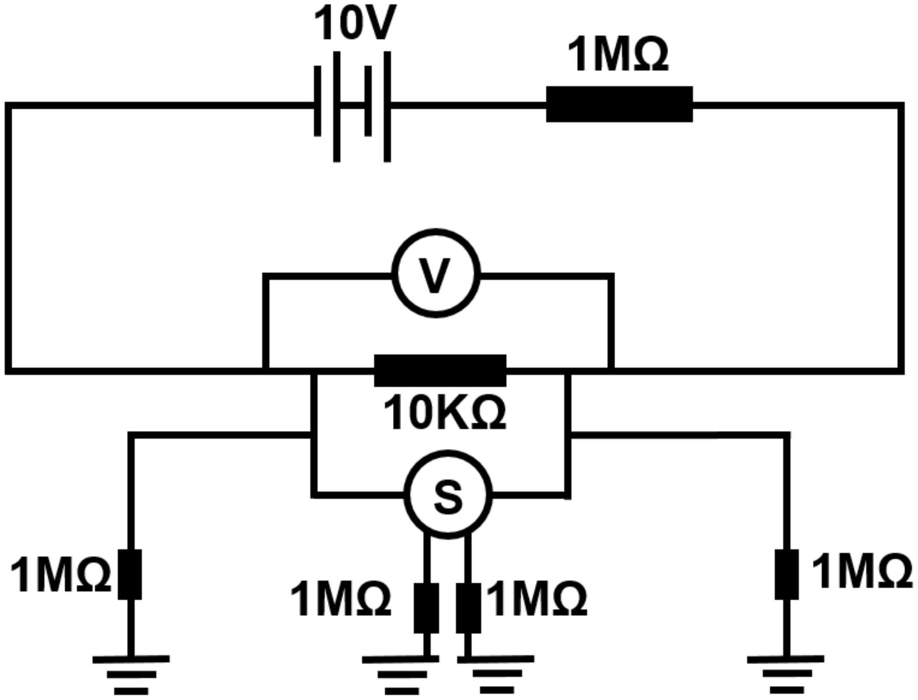 本实用新型公开了一种用于量子芯片通断与约瑟夫森结常温电阻的测试电路,属于器件检测技术领域,要解决的技术问题为如何对制备完成的量子计算芯片的优劣进行初步筛查,对制备的约瑟夫森结性能进行估算。包括:驱动电源,所述驱动电源用于提供直流驱动电源;限流电阻,所述限流电阻的第一端与驱动电流的正极电连接;测量电阻,所述测量电阻的第一端与所述限流电阻的第二端电连接,所述测量电阻的第二端与所述驱动电流的负极电连接,所述测量电阻用于通过与待测样品并联。
