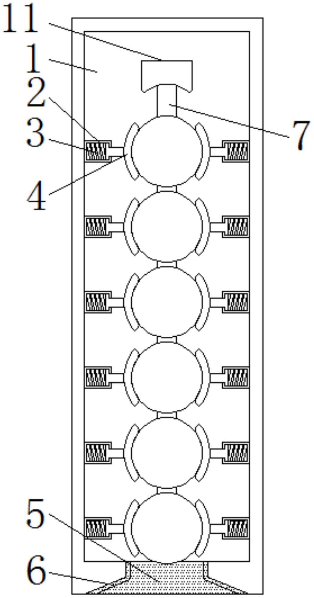 本实用新型涉及乒乓球技术领域,且公开了一种便于取放的乒乓球收纳筒,包括筒体,所述筒体的内壁设置有安装座,所述安装座的内部设置有弹簧,所述弹簧的顶部连接有夹板,所述筒体的底部设置有开口,所述开口的表面设置有缓冲层,所述筒体的外壁设置有滑槽,所述滑槽的内部设置有滑动部。该便于取放的乒乓球收纳筒,通过夹板与弹簧的配合,用户对乒乓球进行拾取时,使开口对准乒乓球并下压筒体,随着乒乓球的进入夹板在弹簧的支撑下向外挤压随后复位,完成对乒乓球的夹持,对多个乒乓球进行拾取时,乒乓球之间相互挤压,可逐层向上移动,便于用户对乒乓球进行拾取的同时,保证了乒乓球存放时的稳定性,且提高了收纳筒的收纳能力。