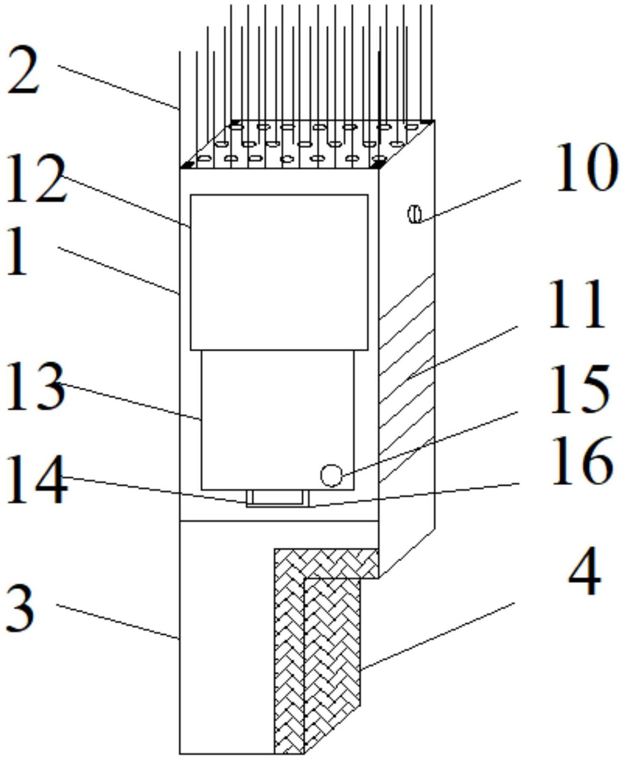 本实用新型公开了一种内存条擦拭装置,包括手柄体,其特征在于,手柄体上端设置有刷毛,手柄体上端设置有通孔,手柄体上端四角出均设置有节能灯,手柄体为中空结构,手柄体内上部设置有风机,手柄体内设置有位于风机下方的集尘腔,集尘腔设置有位于手柄体正面的抽板,抽板与手柄体正面上设置的抽槽滑动连接,手柄体的下部固定连接有L型柄把,L型柄把的侧面上设置有擦拭棉体,抽板侧角处设置有出风口。本实用新型,其内存条上的灰尘经过毛刷扬起,风机吸附灰尘通过通孔进入集尘腔内,集尘腔内设置有易粘灰的吸附条和吸附层,可有效吸附灰尘,使得经过刷起的灰尘不会飞扬,通过滑动抽板,便于清理集尘腔内的灰尘,方便实用。