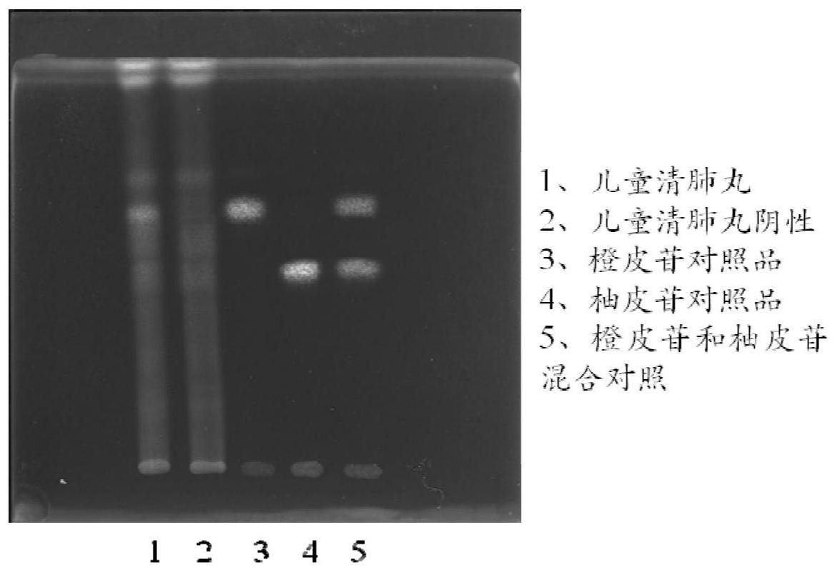 本发明公开了一种儿童清肺丸的质量检测方法,涉及药品检测技术领域。本发明公开的质量检测方法包括如下步骤:取儿童清肺丸,破碎,加入硅藻土,再加入甲醇,超声,过滤,将滤液蒸干,在残渣中加入甲醇溶液使其溶解,得到供试品溶液。以薄层色谱法对其中的橘红进行定性鉴定,所用展开剂包含三氯甲烷、甲醇、冰乙酸和水,四种材料的体积比为:三氯甲烷:甲醇:冰乙酸:水=(6~12):(3~6):(0.5~1):(0.2~0.8)。以本发明公开的配方制备的展开剂,在质量检测过程中可使橘红与化橘红明显区别开来,并且制备过程简单,所需设备较少,适合推广。