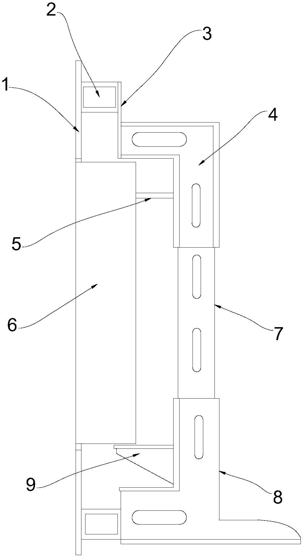 本实用新型涉及固定装置技术领域,尤其涉及一种屏风安装用固定结构,包括屏风组件、显示组件、第一支架、第二支架和连接支架;连接支架竖直设置,第一支架设置在连接支架的顶部,第二支架设置在连接支架的底部;第一支架的顶部设置有连接板,连接板上固定安装有角铁支架;第二支架上设置有支撑台,支撑台设置呈三角形;第二支架的一侧设置有角铁支架;两组角铁支架相互平行;屏风组件的上部和下部分别与两组角铁组件固定安装;屏风组件的中部形成开口;显示组件嵌入在开口处;显示组件的背部设置有定位孔;显示组件的底部与支撑台相接触;本实用新型安装方便,同时能够对显示组件的位置进行多角度调节,更加实用。