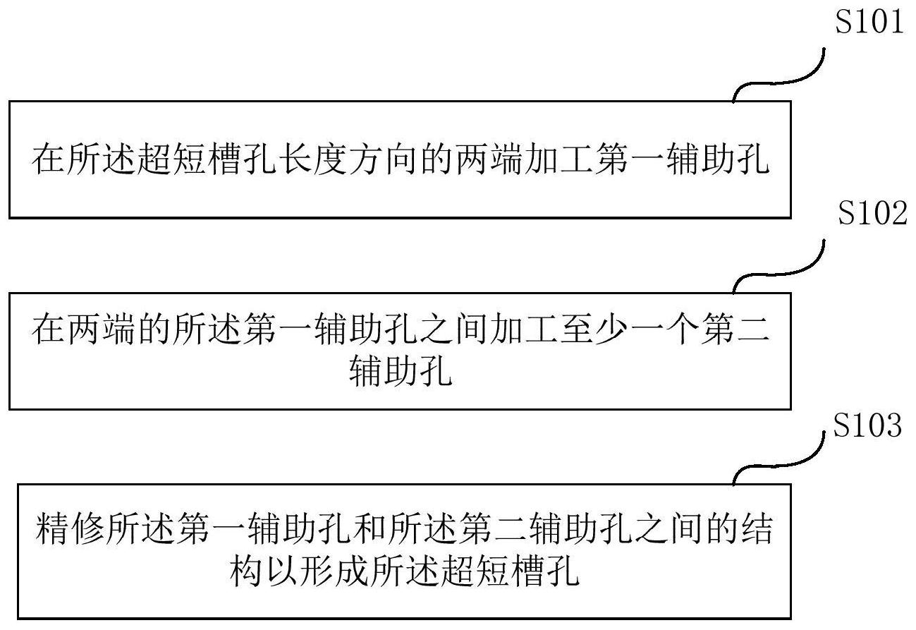 本发明实施例提供的一种电路板超短槽孔加工方法,其属于电路板制造技术领域,包括以下步骤:在所述超短槽孔长度方向的两端加工第一辅助孔,在两端的所述第一辅助孔之间加工至少一个第二辅助孔,精修所述第一辅助孔和所述第二辅助孔之间结构以形成所述超短槽孔。通过在加工超短槽孔之前预先钻出第一辅助孔和第二辅助孔,以在电路板待开槽位置钻出形状与超短槽孔接近的预钻槽,从而去除了超短槽孔内大部分物料。在预钻槽的基础上再进一步精修以得到超短槽孔,由于大部分物料已被预先去除,此时槽刀的切削余量小,所受的横向不平衡力相应也变小,不容易产生偏摆,从而保证了电路板超短槽孔的加工精度。