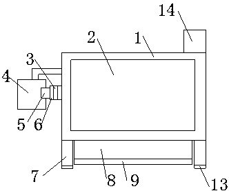 本实用新型涉及一种具有搅粉架的碳粉盒,包括碳粉盒主体、透明观察窗、链条、电动机、连接轴一、链轮一、支撑腿、出料管、管盖、连接轴二、链轮二、转轴、减震垫、进料管以及扇叶,所述碳粉盒主体内部固定有连接轴一以及连接轴二,所述连接轴一位于连接轴二前侧,所述连接轴一以及连接轴二左侧均穿过碳粉盒主体,并延伸至碳粉盒主体左侧,所述连接轴二左端固定有链轮二,所述链轮二左端固定有转轴,所述转轴左端与电动机的主轴固定连接,所述连接轴一左端固定有链轮一,所述碳粉盒主体下端固定有出料管,所述支撑腿设有两个,两个所述支撑腿对称固定在碳粉盒主体下端面上,本实用新型搅拌效果好,减震效果好,且结构简单,操作方便。