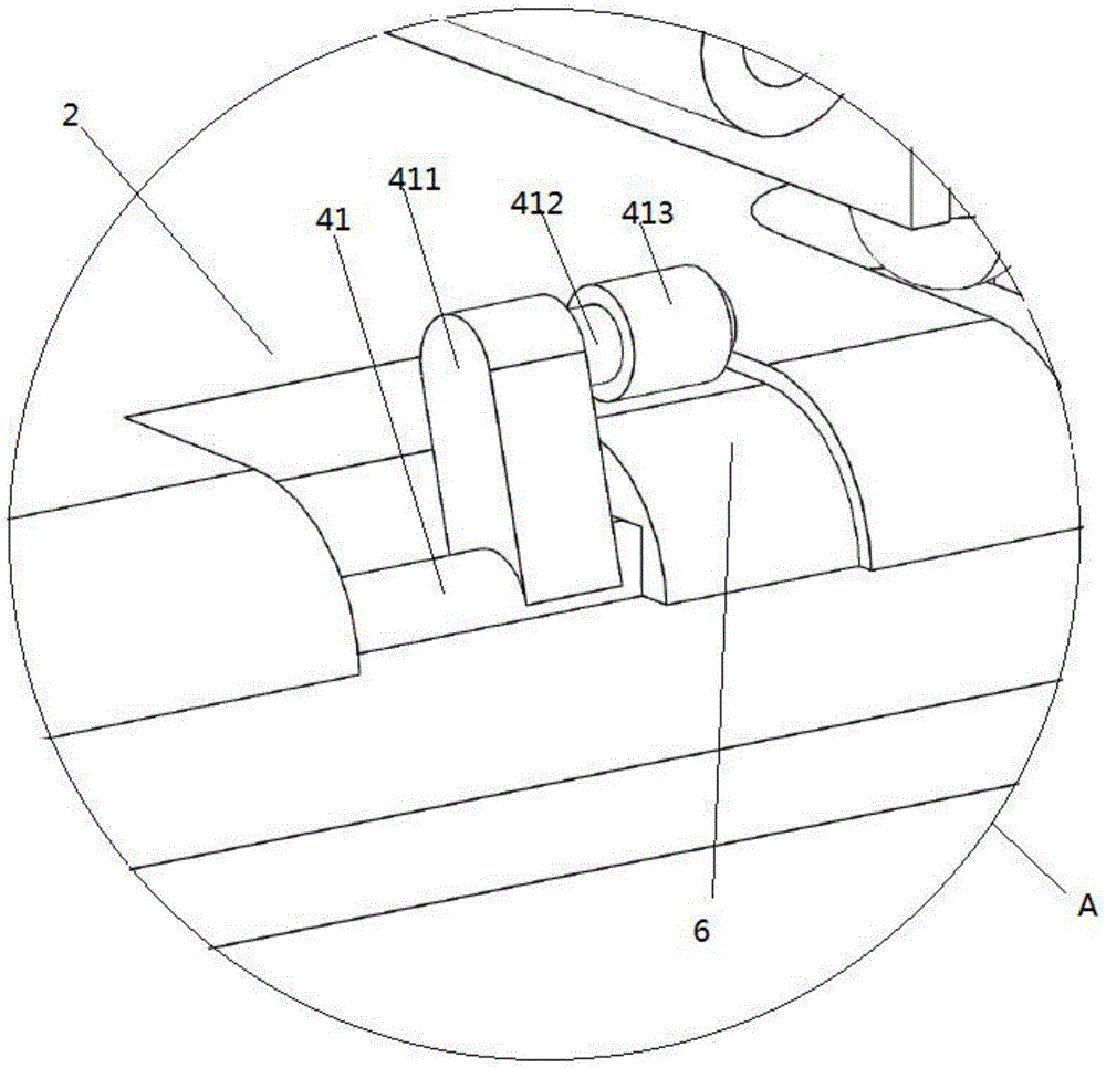 本实用新型公开了一种压花机的出料口挡板,所述压花机包括后壳体,所述后壳体设有出料口,所述出料口包括上板及下板,所述上板和下板之间设有挡板,所述挡板的上侧边与上板通过转轴连接,所述挡板的下侧边延伸至所述下板,所述上板与挡板的连接处设有用于驱动所述挡板翻转的驱动机构,所述出料口设有光电传感器及控制器,所述驱动机构、光电传感器同时与所述控制器电性连接。本实用新型的挡板的翻转能够通过控制器控制器,能够实现按需自动关闭或开启,进一步提高了出料口的安全防护性能。