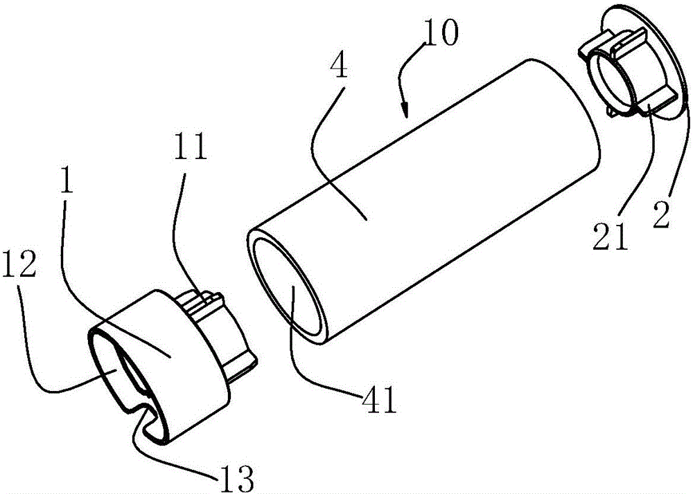 本实用新型公开了一种气泡机的料卷装置,包括芯筒和缠绕在芯筒上的塑料薄膜,所述芯筒的一端由第一模制件构成,第一模制件的中心设有通孔,所述第一模制件对应于所述通孔的内壁上设有至少一个凹槽。本实用新型在模制件的内壁上设有凹槽,可以与气泡机料轴上的定位凸台配合,便于料卷装置在料轴上快速定位,并能避免料卷在料轴上打滑,提高供料的稳定性。
