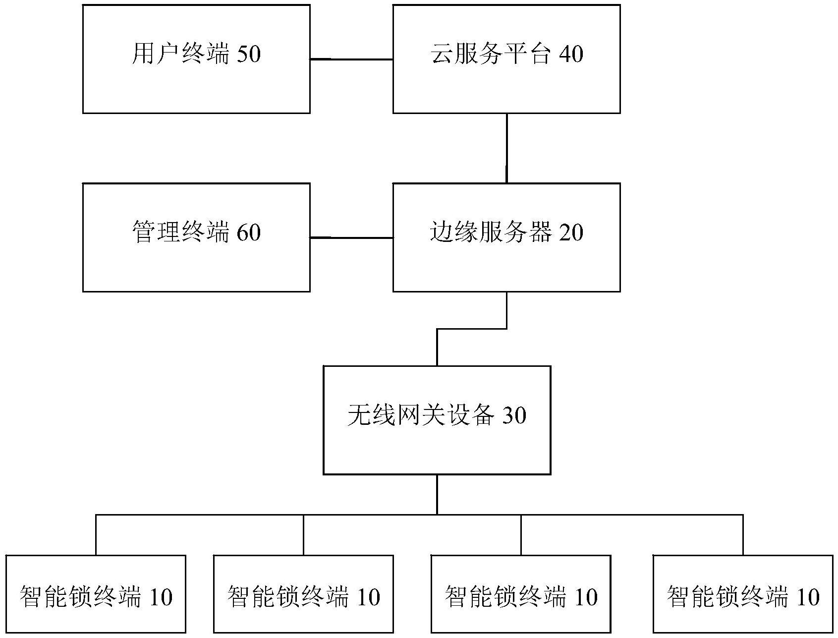 本实用新型提供无线通信的智能锁管理系统,包括:智能锁终端、边缘服务器、无线网关设备、云服务平台和用户终端;其中,智能锁终端通过无线网关设备与边缘服务器建立无线通信连接,用于获取开锁请求,并将开锁请求发送到边缘服务器进行;边缘服务器通过互联网与云服务平台连接,用于对获取的开锁请求进行验证,当验证通过后返回开锁指令到智能锁终端,由智能锁终端执行相应的开锁指令;以及用于将智能锁终端的事件信息上传至云服务平台进行存储;用户终端通过互联网与云服务平台连接,用于访问云服务平台获取智能锁终端的事件信息。本实用新型有利于减少门禁系统的安装成本,提高了门禁系统自组网络系统的组网便捷程度。