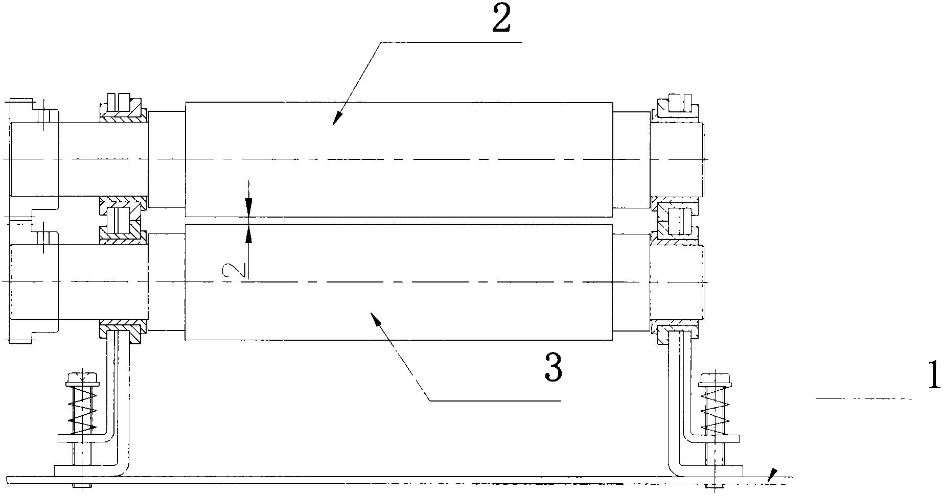本实用新型涉及一种塑封机,特别涉及一种证件塑封机。其结构包括支架,所述的支架上方分别架设有上胶辊和下胶辊,上胶辊和下胶辊之间留有不小于2mm的缝隙,所述的支架上固定有主动齿轮,所述的主动齿轮一侧啮合所述的下胶辊的转动齿轮,另一侧通过过渡齿轮啮合所述的上胶辊的转动齿轮,且所述的过渡齿轮的转动轴与主动齿轮的转动轴之间设置有连杆。本实用新型的一种证件塑封机,其改变了塑封机的机械结构和传动系统,保证机器在塑封厚的证件时有良好的塑封效果,又能运行平稳。