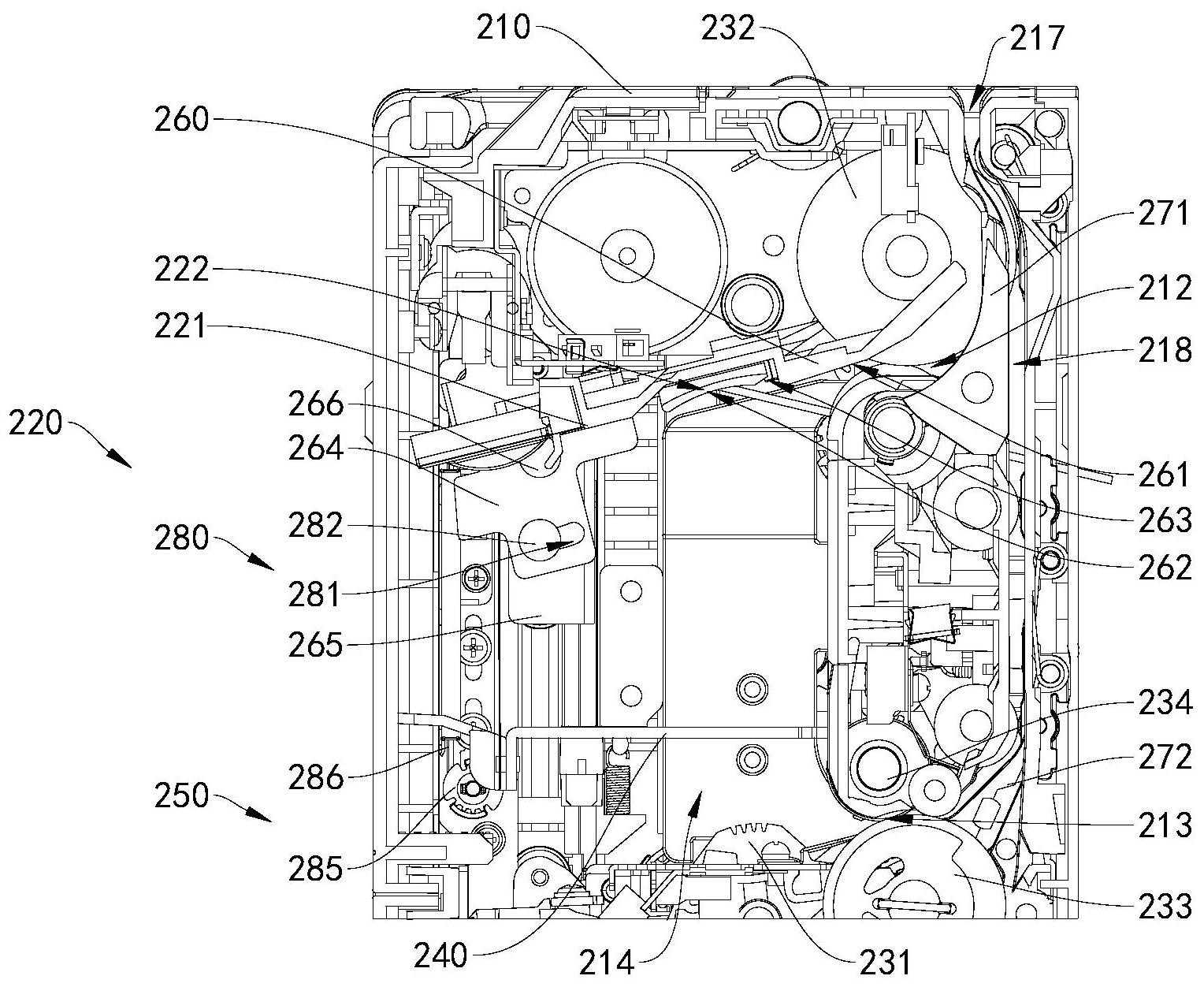 本发明涉及薄片类介质处理设备领域,具体而言,涉及一种薄片类介质集积分离装置和现金循环处理设备;薄片类介质集积分离装置包括机架和压纸机构,机架设置有用于容纳薄片类介质的容纳腔,容纳腔设置有入纸口、出纸口和踢纸辊,容纳腔内还设置有用于支撑介质的托纸板;压纸机构包括压纸板和驱动组件,压纸板具有沿堆叠方向排布的第一位置和第二位置,压纸板包括设置于容纳腔内的压纸部,驱动组件与压纸板传动连接,用于驱动压纸板在第一位置和第二位置之间移动;当压纸板位于第一位置时,压纸部邻近出纸口,用于将薄片类介质压向踢纸辊。本发明的薄片类介质集积分离装置能将所剩无几的薄片类介质顺利分离输出。