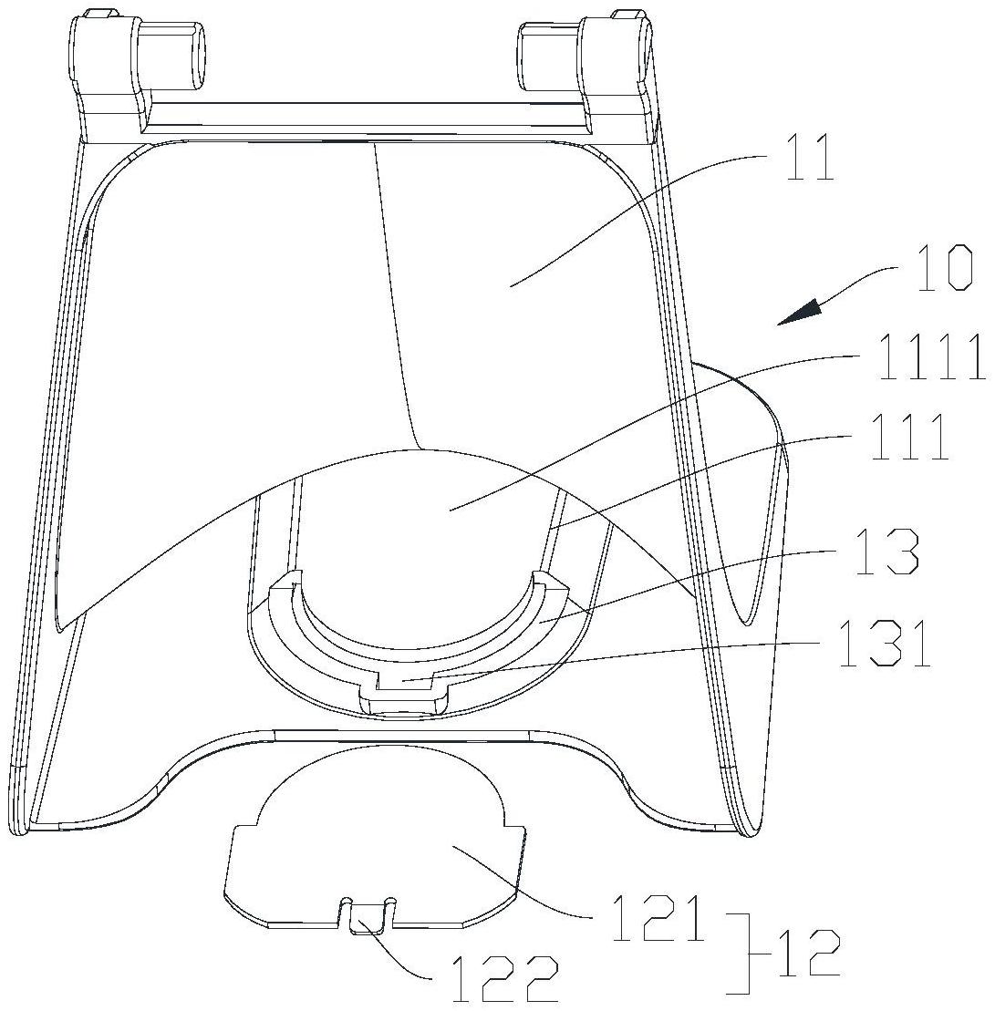 本实用新型涉及条码识别设备及用于条码识别设备的底座,用于条码识别设备的底座包括座体、挡板以及磁性片;所述座体上设于供所述磁性片安装的安装槽;所述安装槽包括开口;所述挡板设置于所述开口一侧的边缘;所述挡板和所述磁性片上设有将所述挡板和所述磁性片卡接的卡接结构。该底座通过在安装槽的开口一侧的边缘处设置挡板,并在该挡板和该磁性片上设置卡接结构,进而将该挡板和该磁性片卡接,从而简化组装程序,提高生产率,该条码识别设备具有制造成本低,组装简便方便,无需专用铆合设备,对设备要求低的优点。
